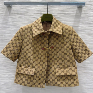 Gucci Short-sleeved Jacket Top Beige Polyester Fiber