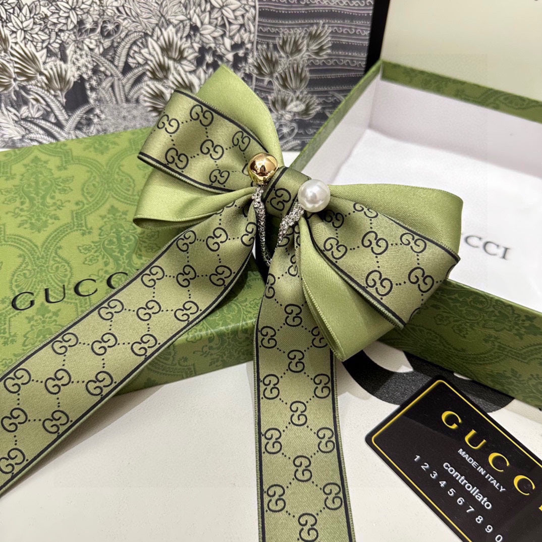 RIBBON BOW HAIR CLIP IN OLIVE GREEN RE-NYLON ATTACHED PEARL 358261
