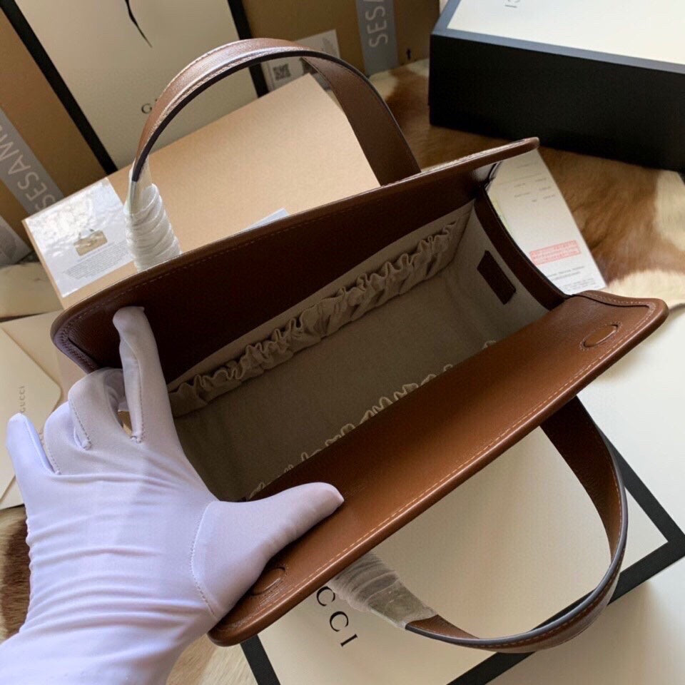 GG HORSEBIT 1955 SMALL 27 BAG IN BEIGE CANVAS AND BROWN CALFSKIN