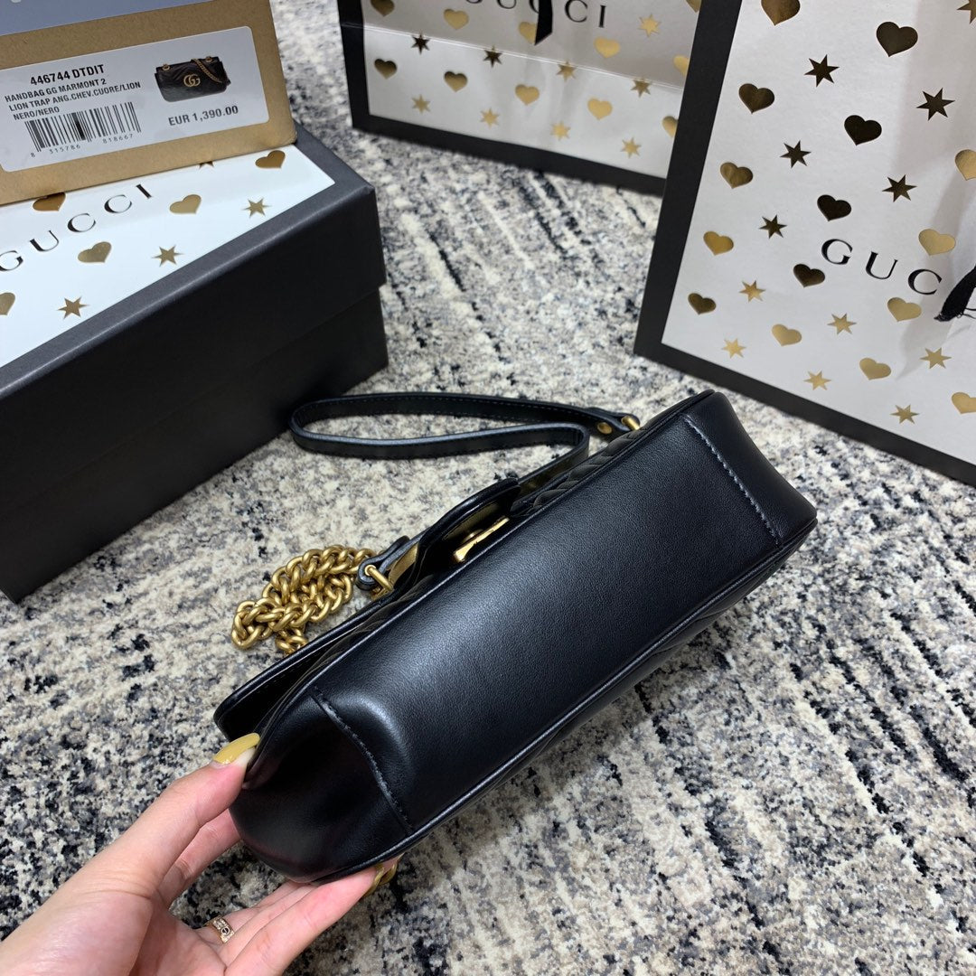 GG Marmont 22cm Black Calfskin Gold Hardware