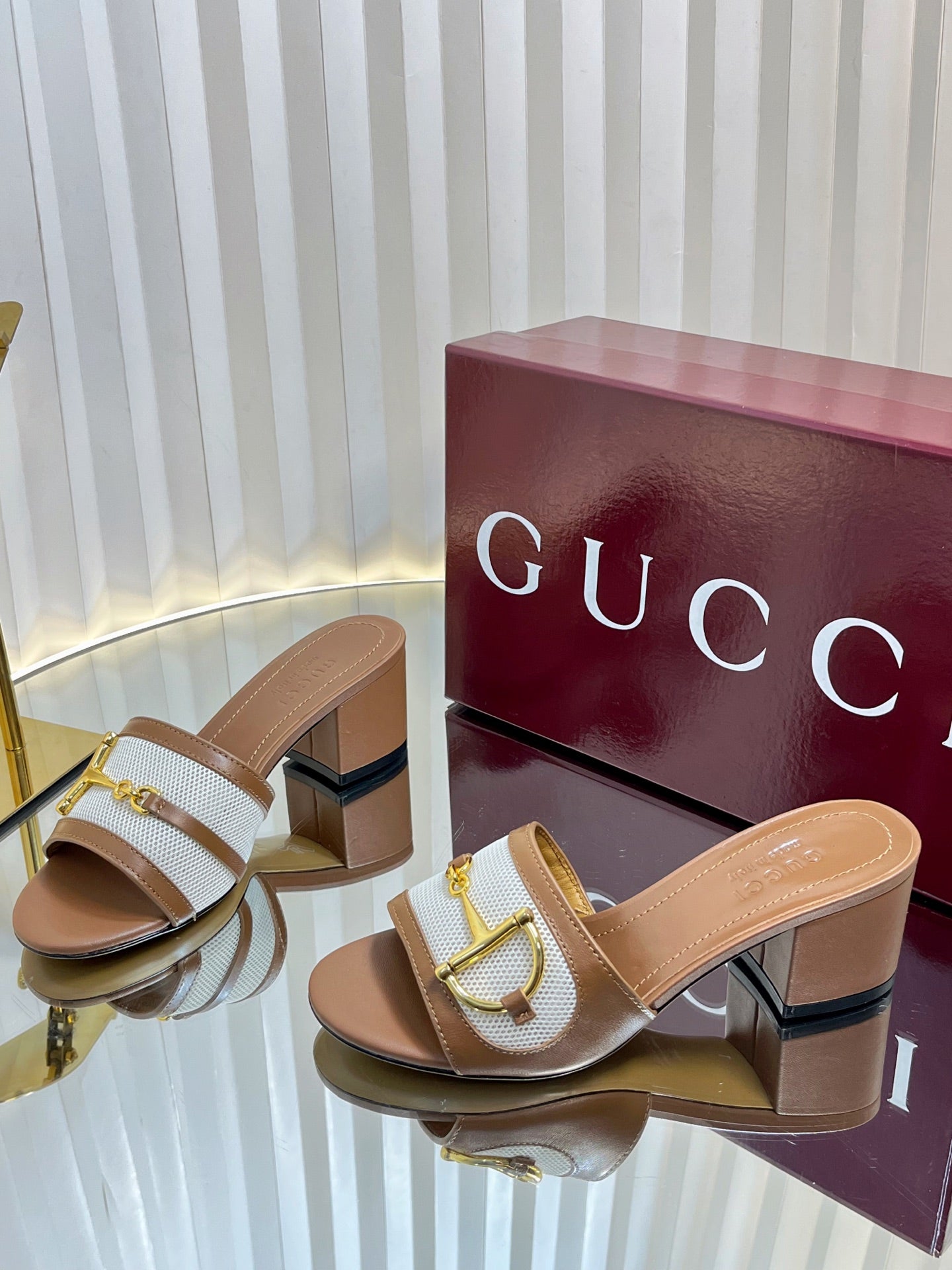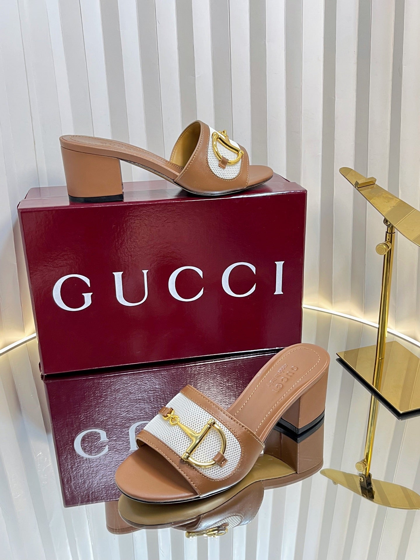 GC 25 Horsebit GG 50mm Sandals Brown Canvas Sheepskin 294666