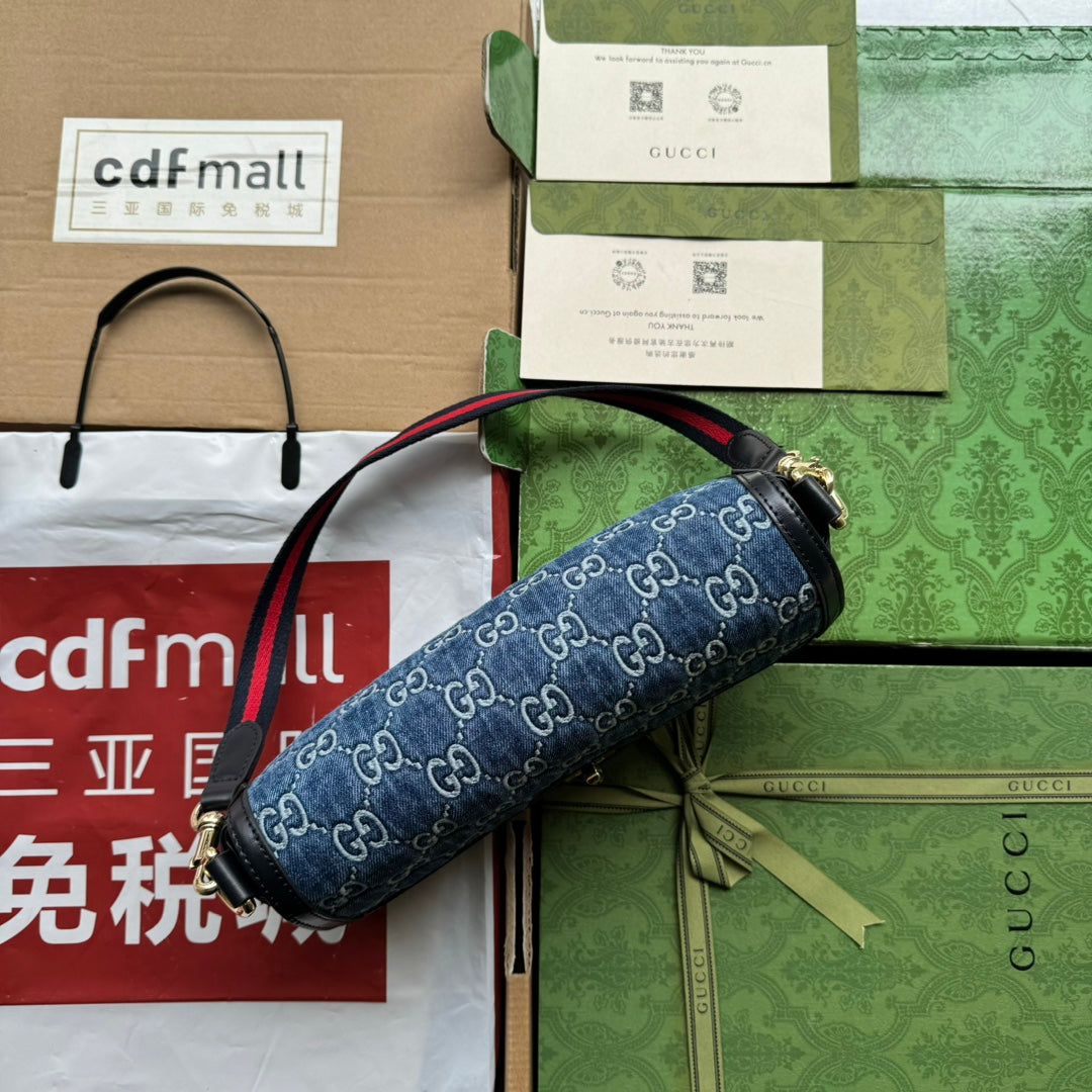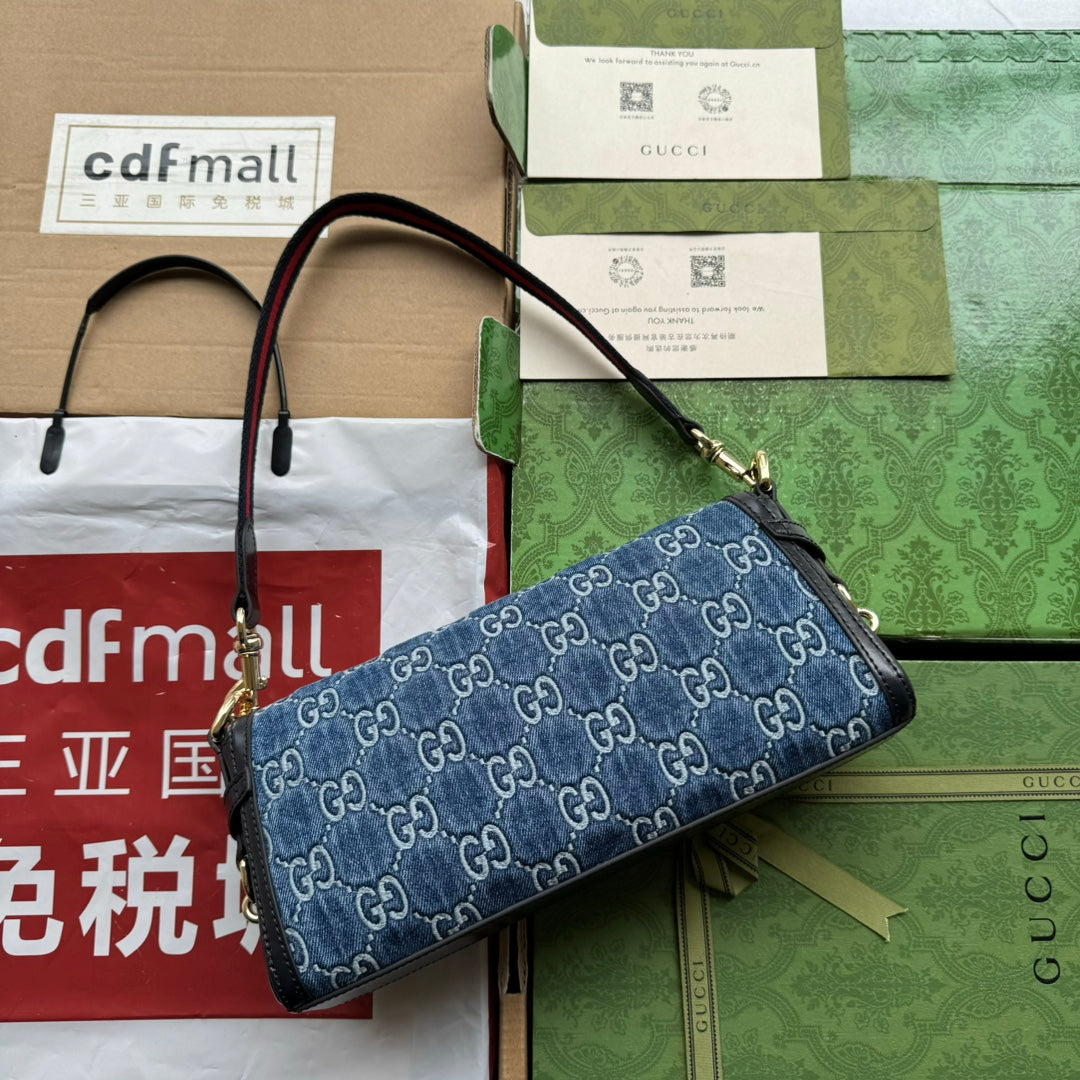 • Material: Embossed denim and calfskin trim