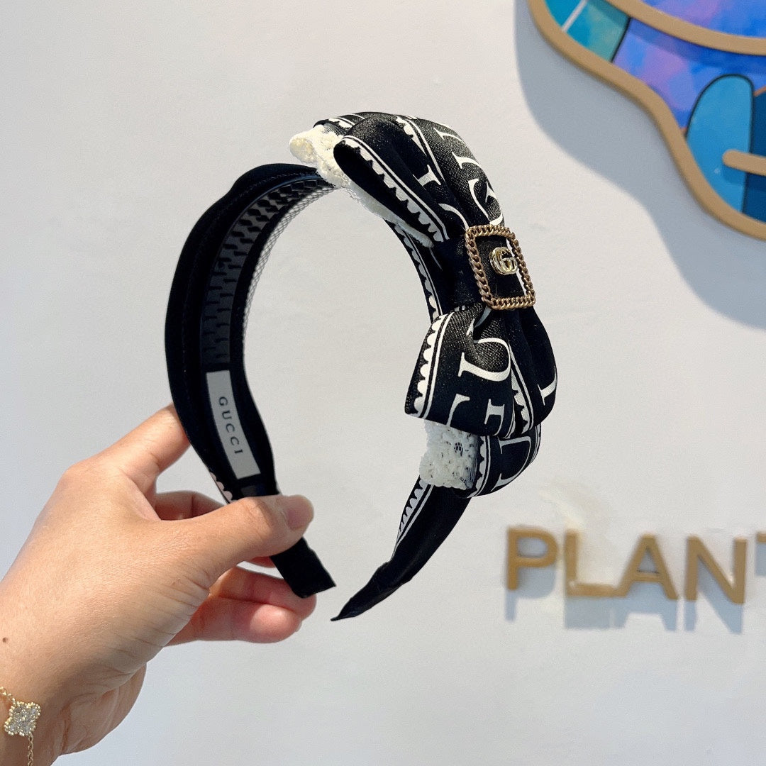 BOW HAIRBAND IN BLACK MIX WHITE RESIN AND FABRIC 432749