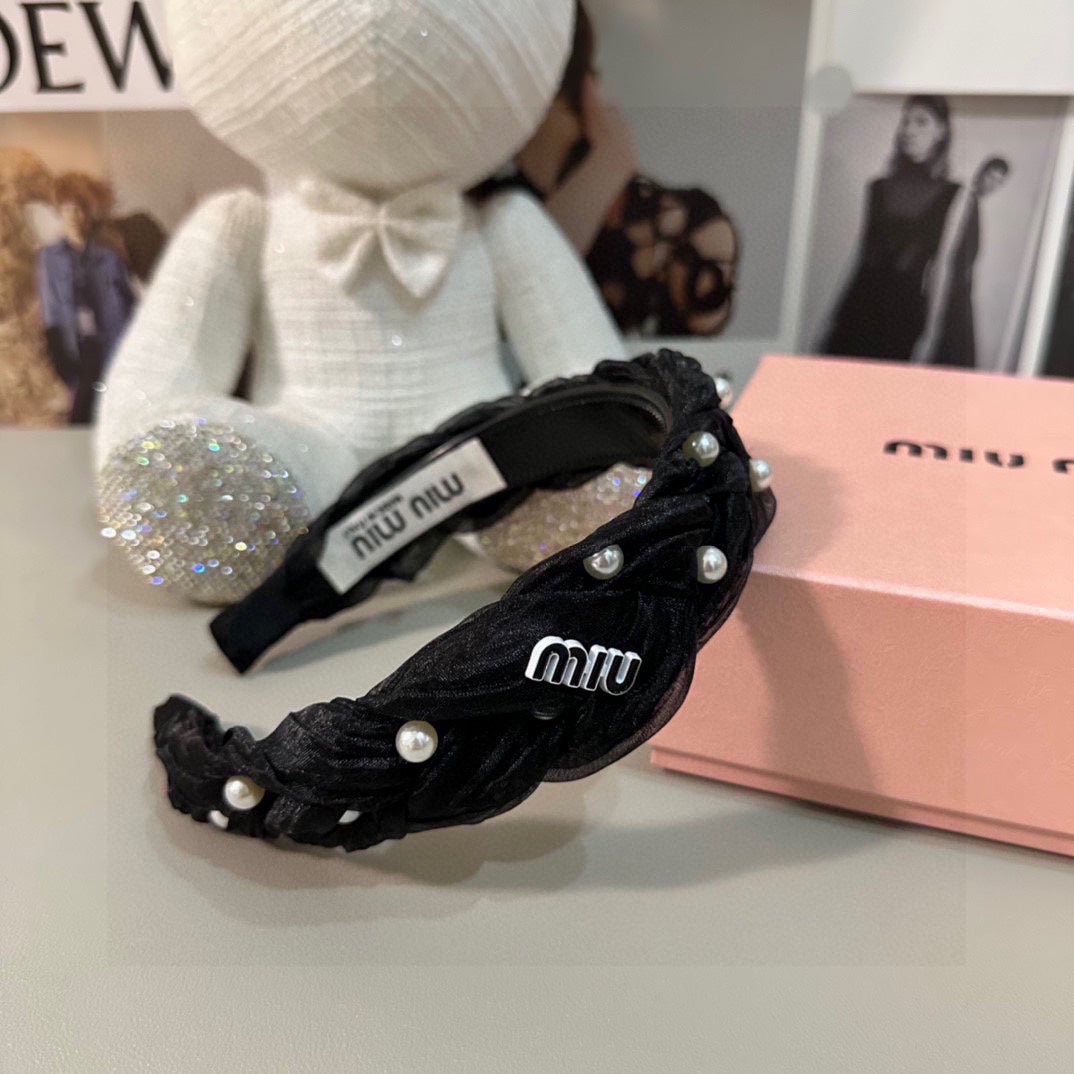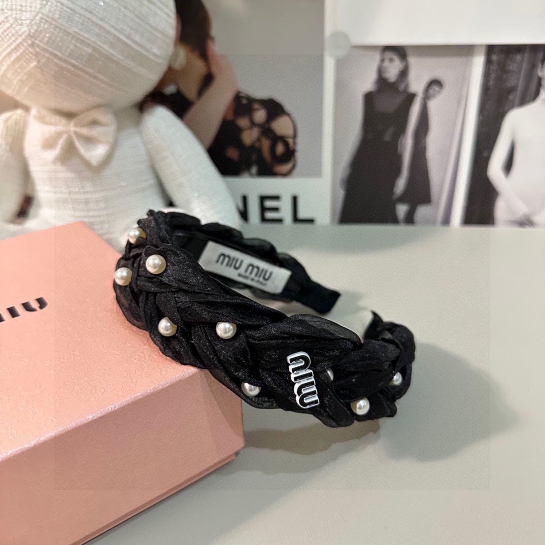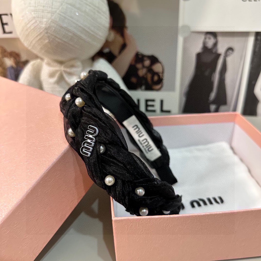 HAIR BAND IN BLACK CHIFFON PEARL-EMBELLISHED 395328