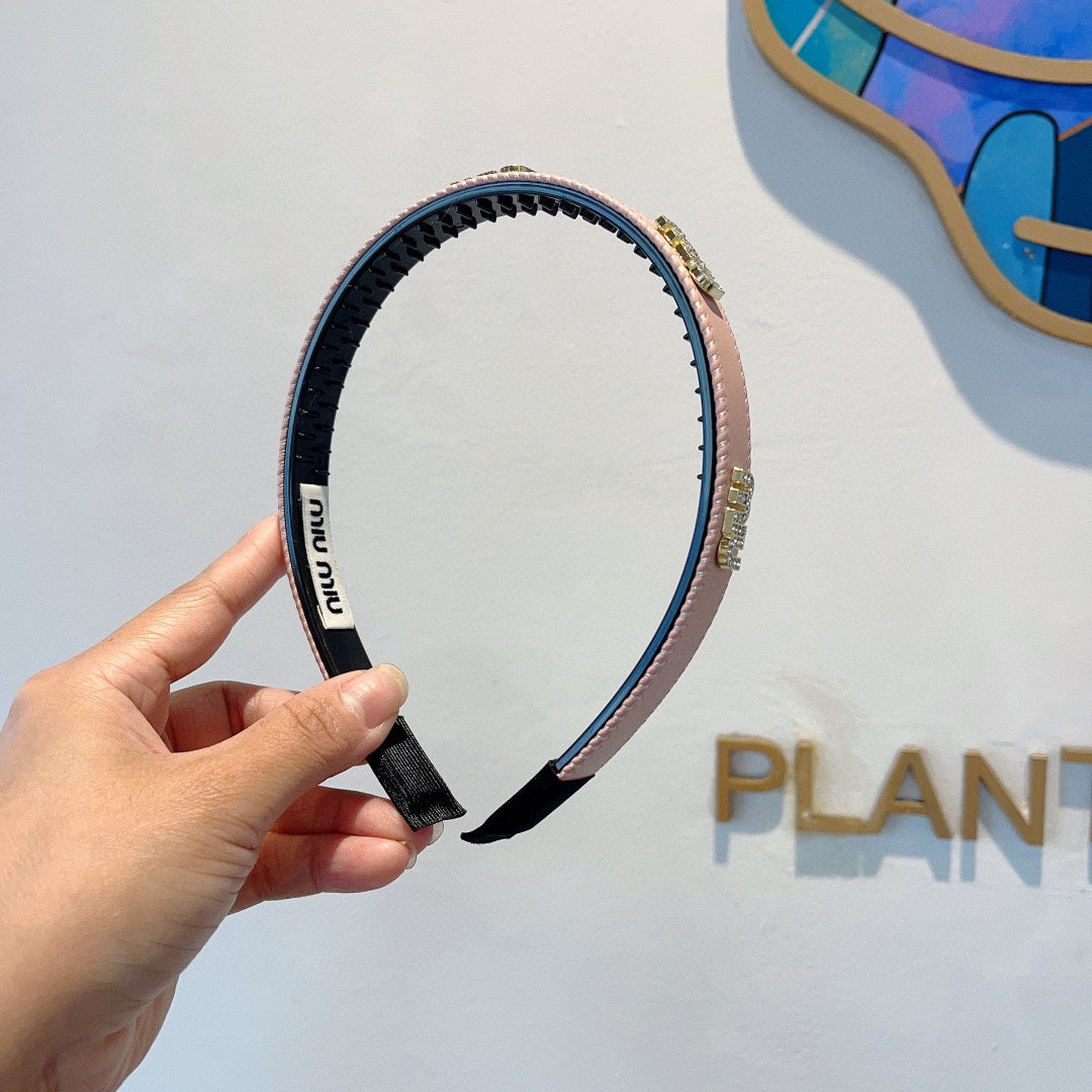 HEAD BAND IN LIGHT PINK LAMBSKIN AND RESIN 417297