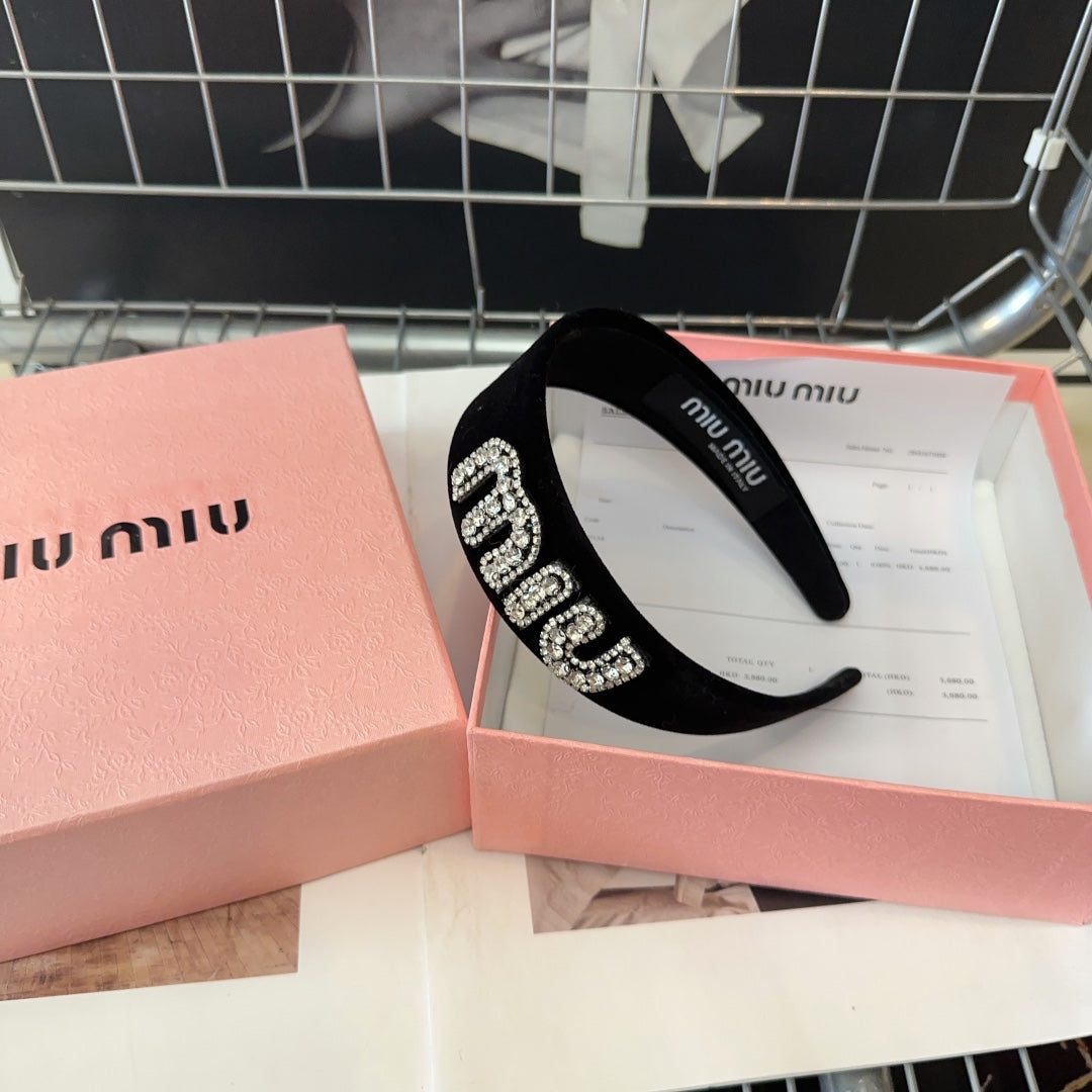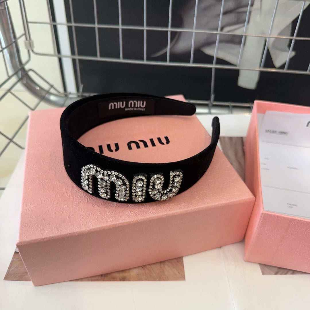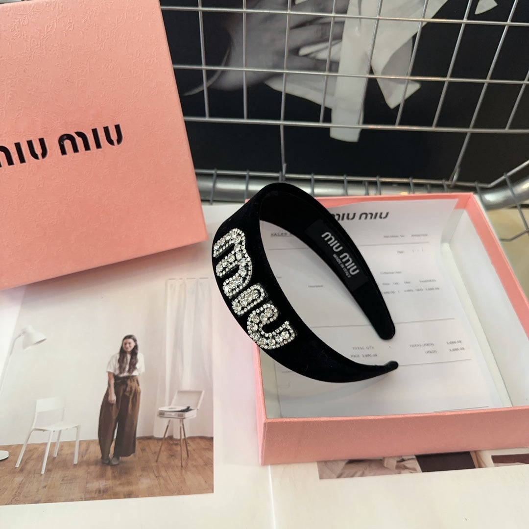 VELVET HEADBAND BLACK WITH RHINESTONES LOGO 432854