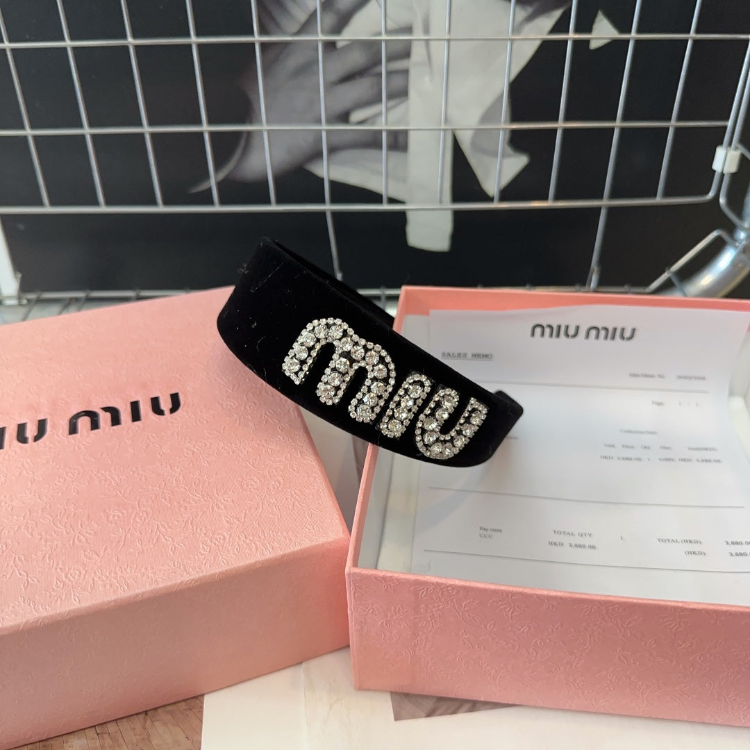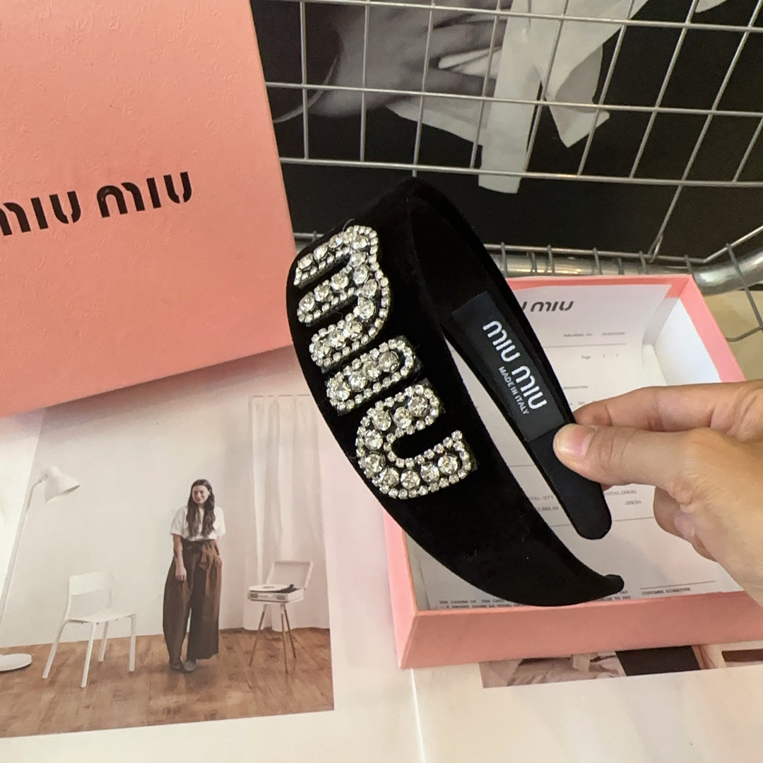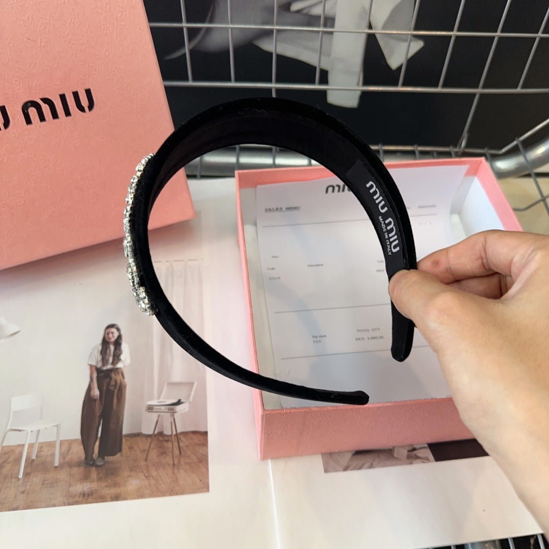 VELVET HEADBAND BLACK WITH RHINESTONES LOGO 432854