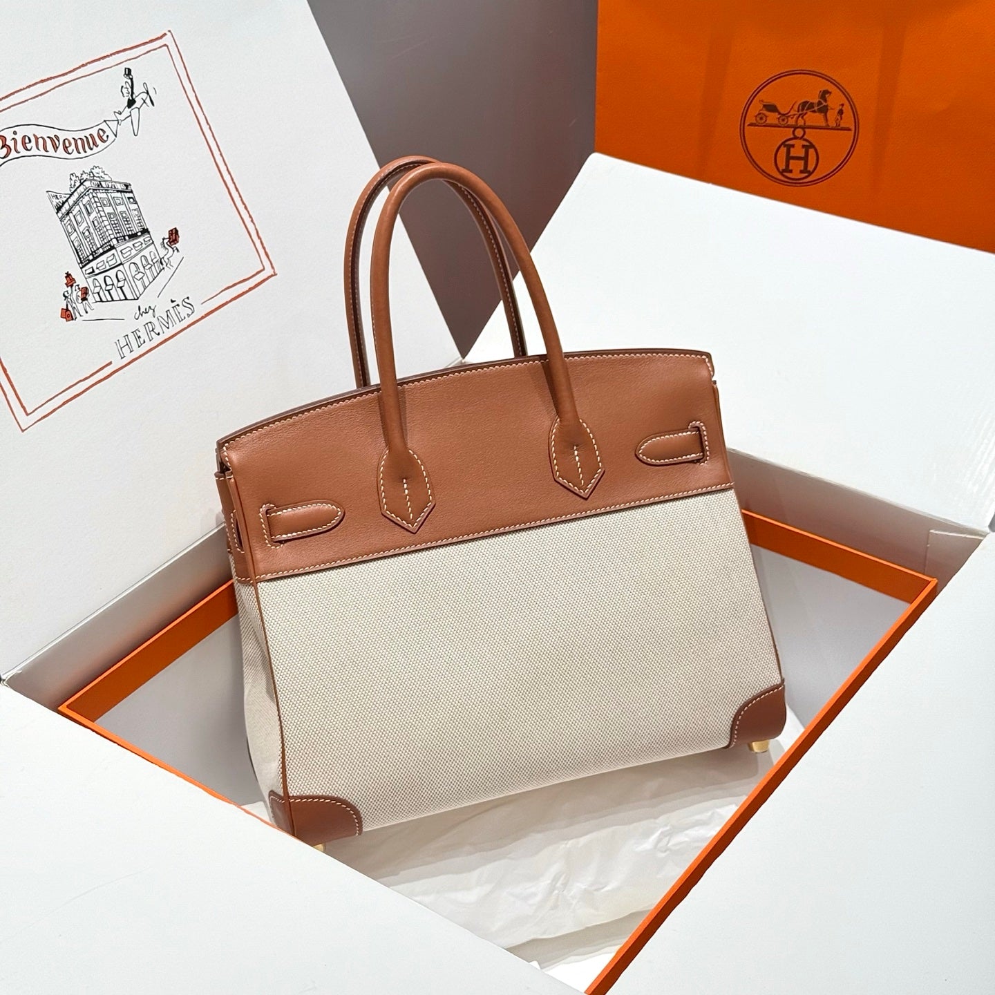 HM Birkin 30 Gold Swift Leather Grey Canvas Gold Hardware