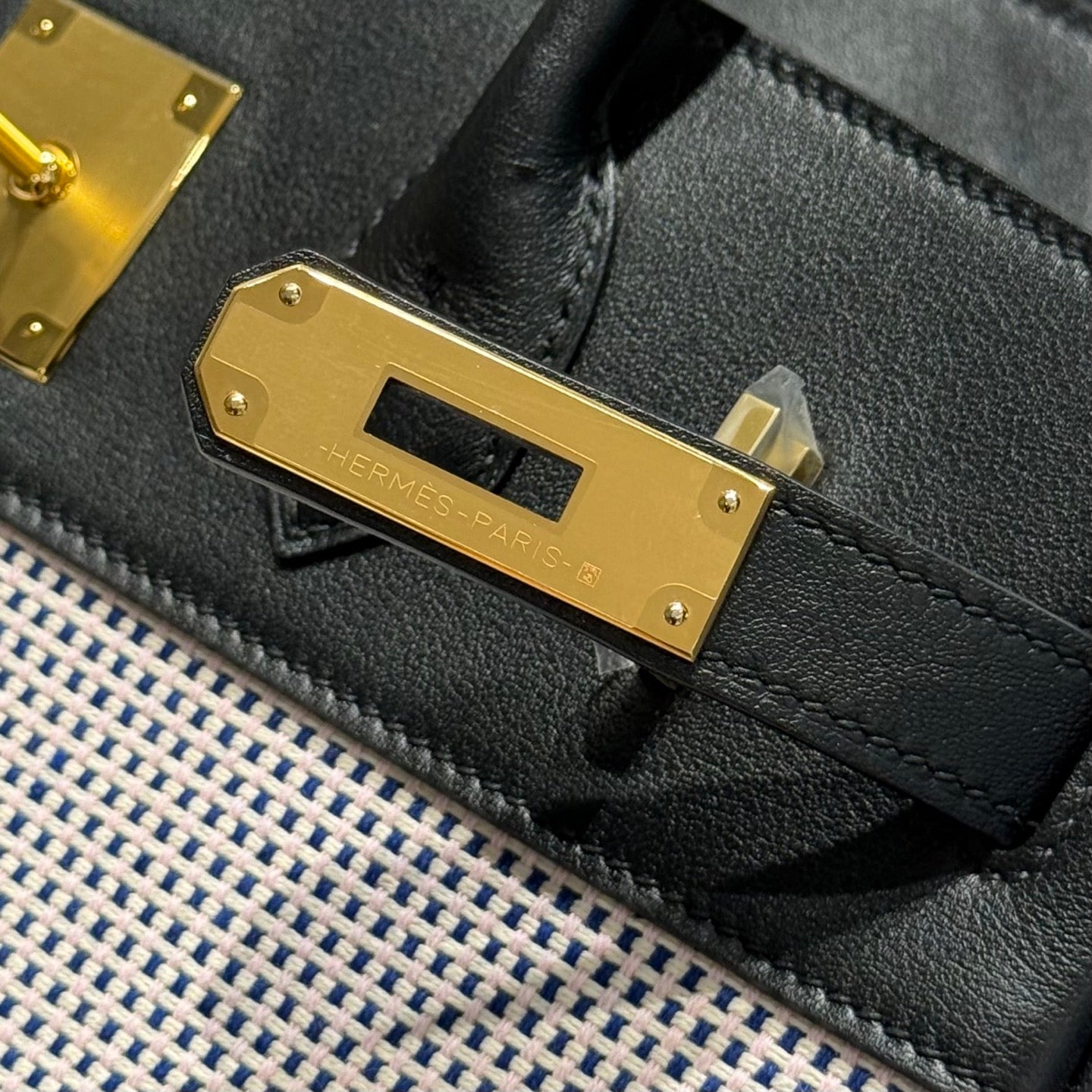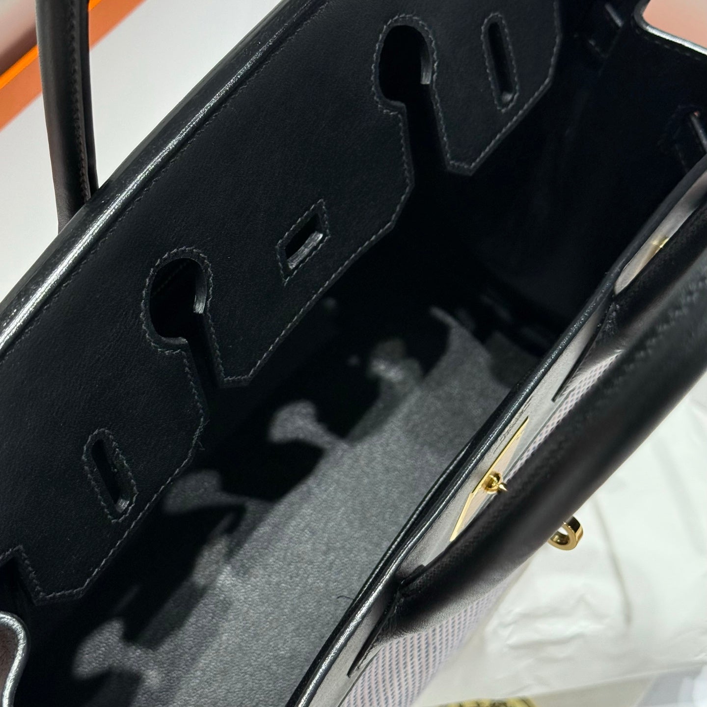 HM Birkin 30cm Black Swift Cowhide With Waffle Light Pink Canvas Fabric Ghw 249973