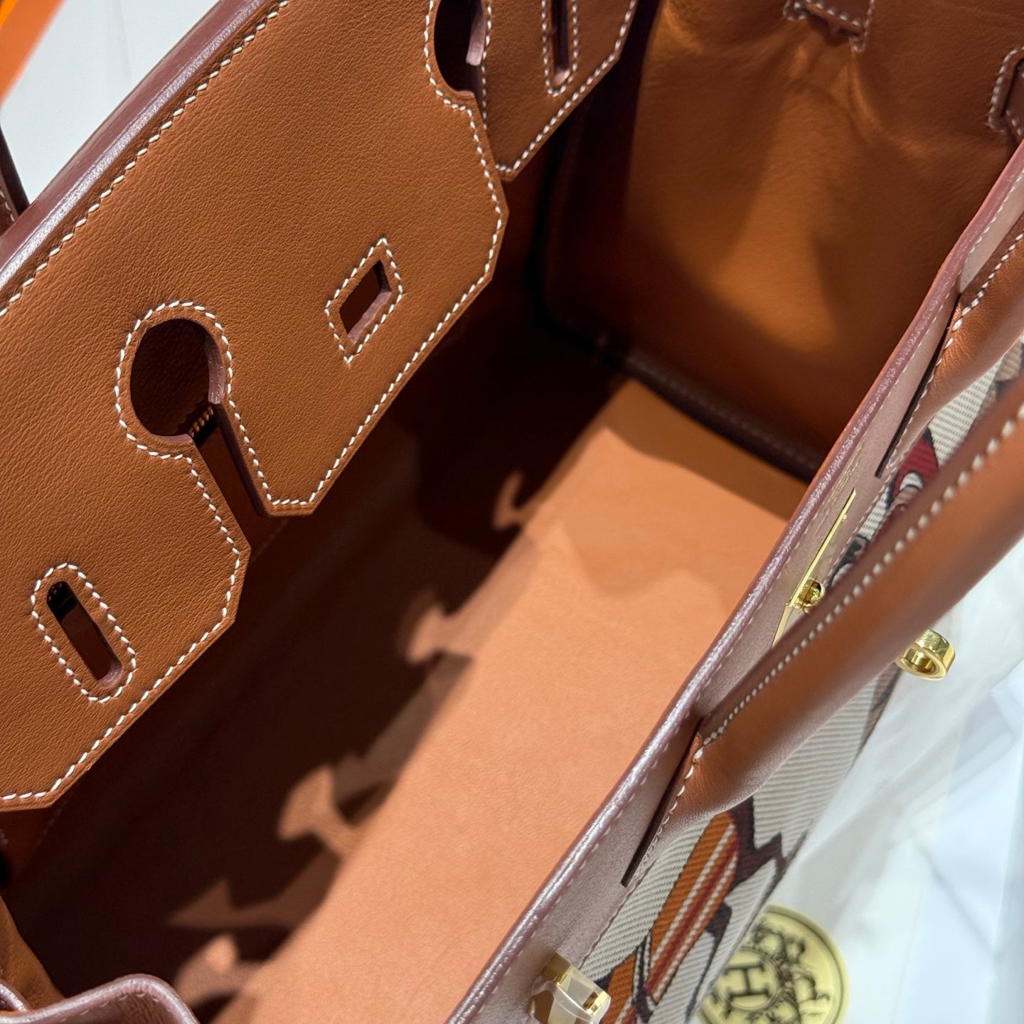 HM Birkin 30cm Golden Brown Swift Cowhide With Horse Totem Beige Canvas Fabric Ghw 249975