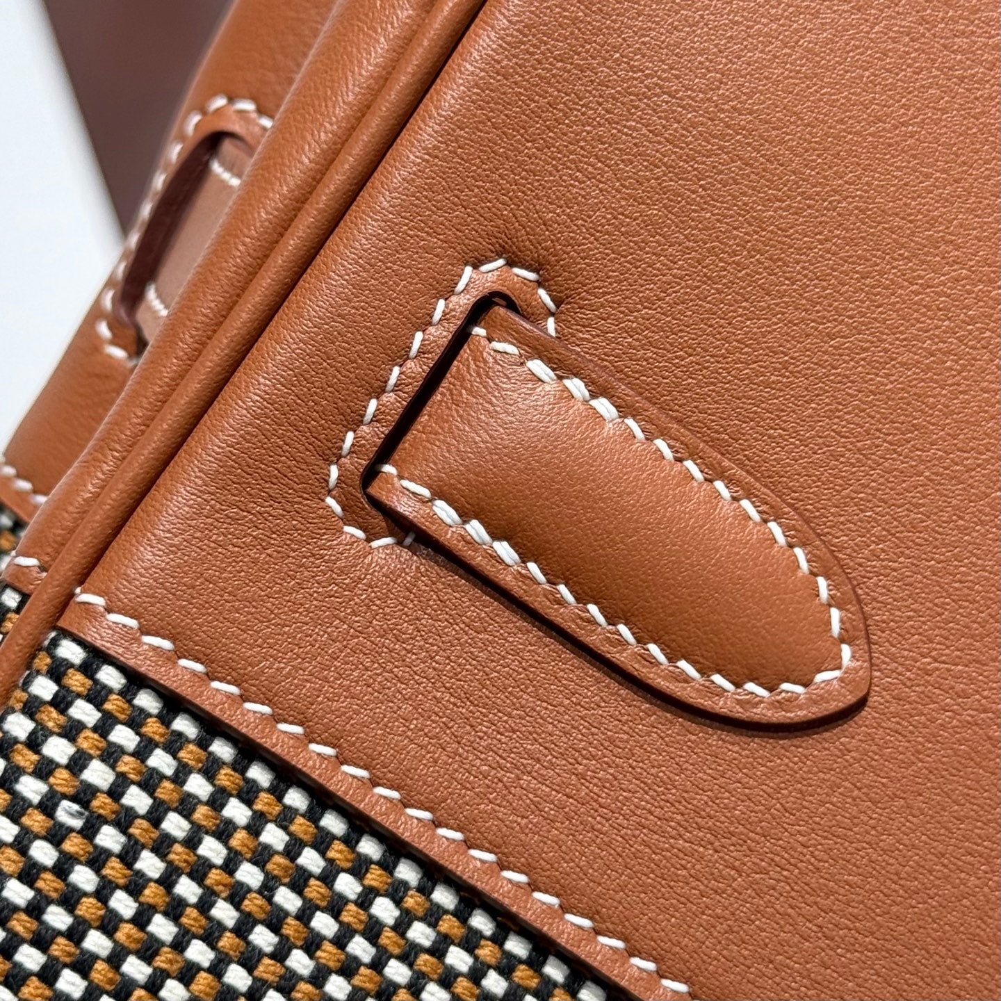 HM Birkin 30cm Golden Brown Swift Cowhide With Waffe Brown Canvas Fabric Ghw 249972