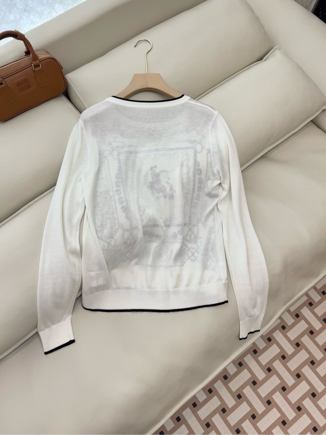 Hm Long Sleeve Knit Sweater White Silk Acrylic