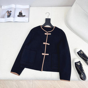 HM Patchwork Leather Lapel Double-faced Black Cashmere Jacket