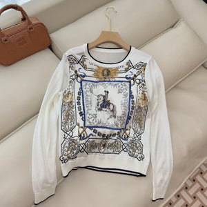Hm Long Sleeve Knit Sweater White Blue Silk