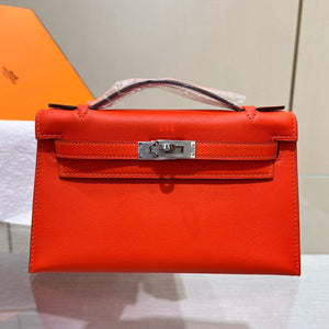 HM KELLY POCHETTE 22CM ORANGE SWIFT SILVER HARDWARE