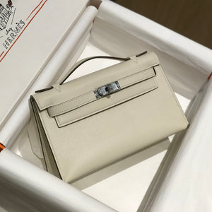 HM KELLY POCHETTE 22CM WHITE BEIGE SWIFT SILVER HARDWARE