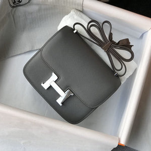 HM CONSTANCE BAG GREY EPSOM LEATHER SILVER HARDWARE