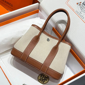 HM Garden Party 30cm Bag Gold Togo Dark Beige Canvas