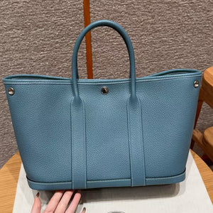 HM Garden Party 30cm Bag Blue Togo Cream Canvas