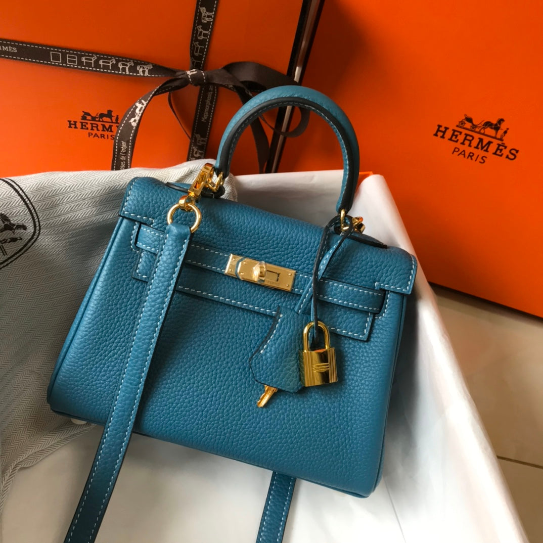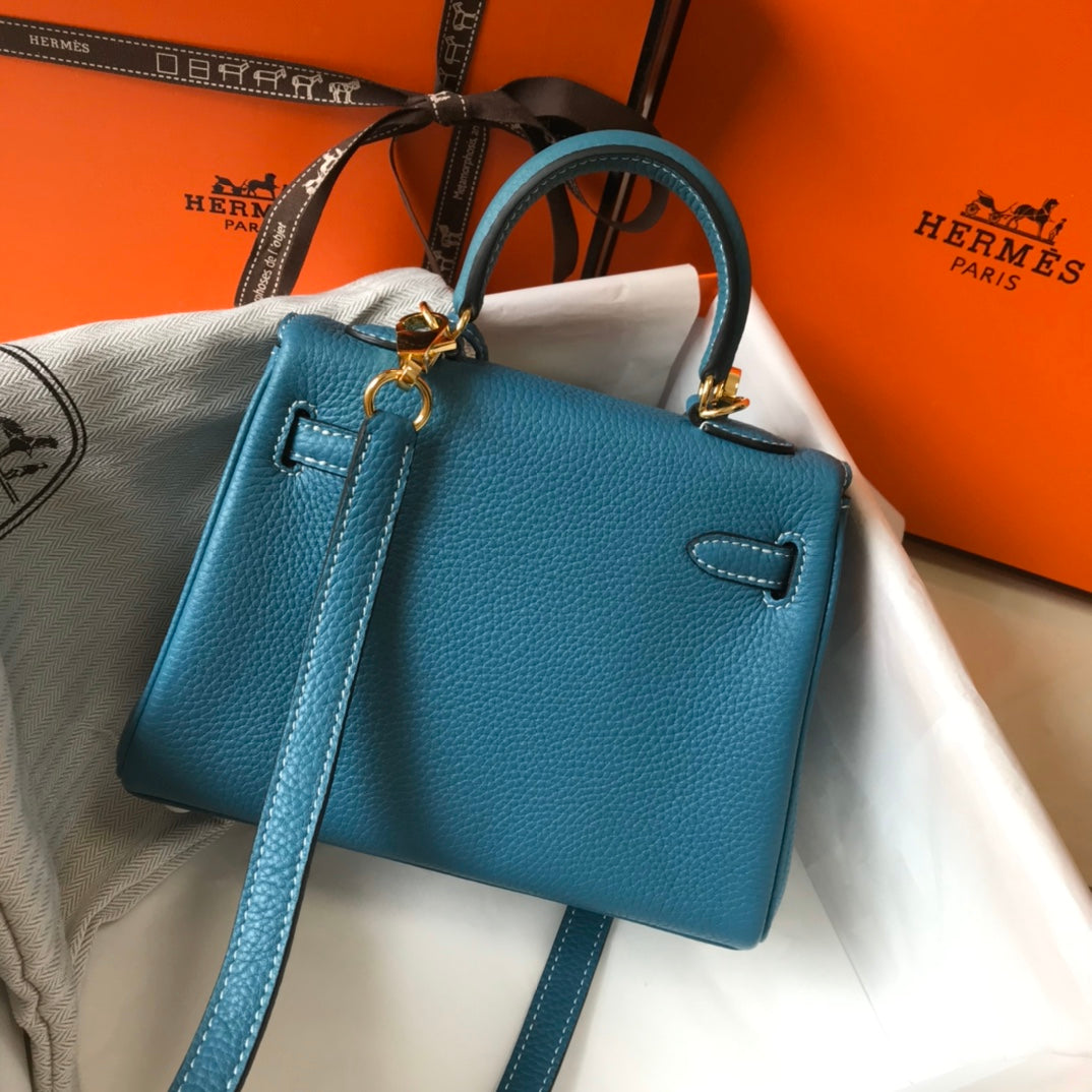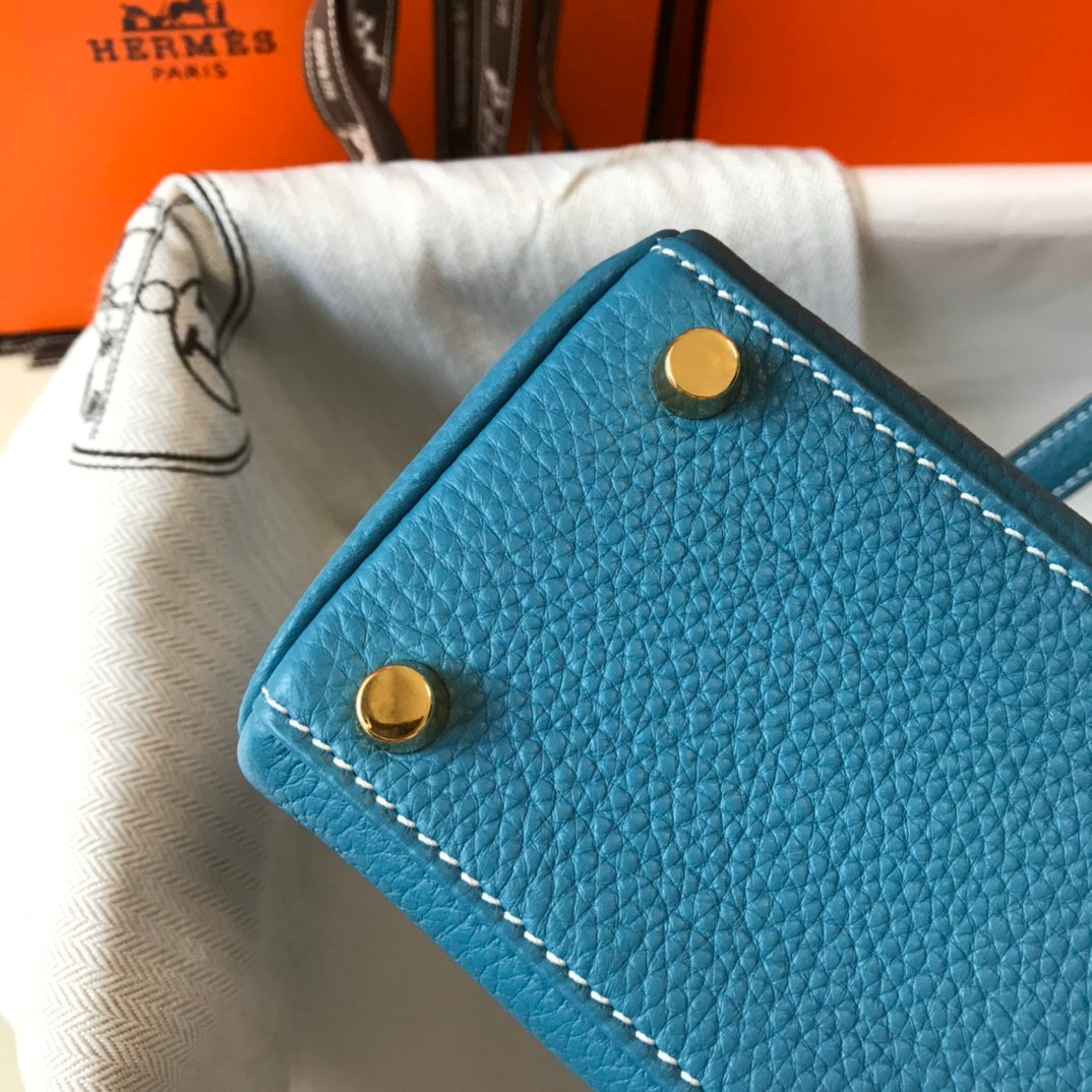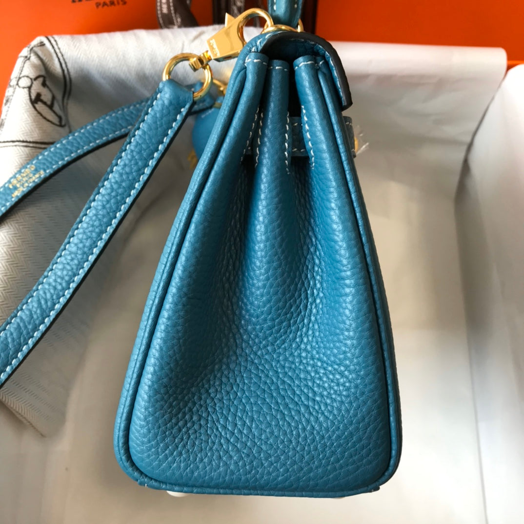 HM Mini Kelly 20cm Blue Jean Togo Leather Gold Hardware