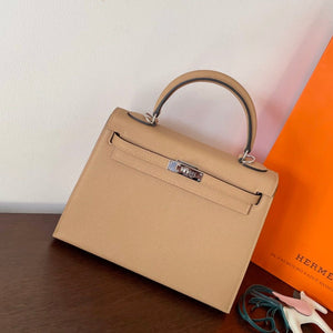 HM KELLY 25CM BEIGE EPSOM LEATHER SILVER HARDWARE
