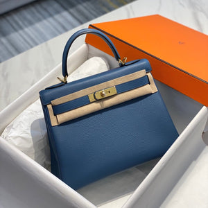 HM KELLY 32CM BAG IN CERULEAN TOGO GOLD HARDWARE