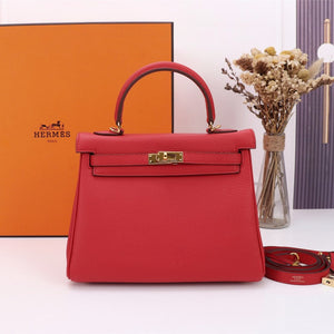HM KELLY 32CM BAG IN RED TOGO GOLD HARDWARE