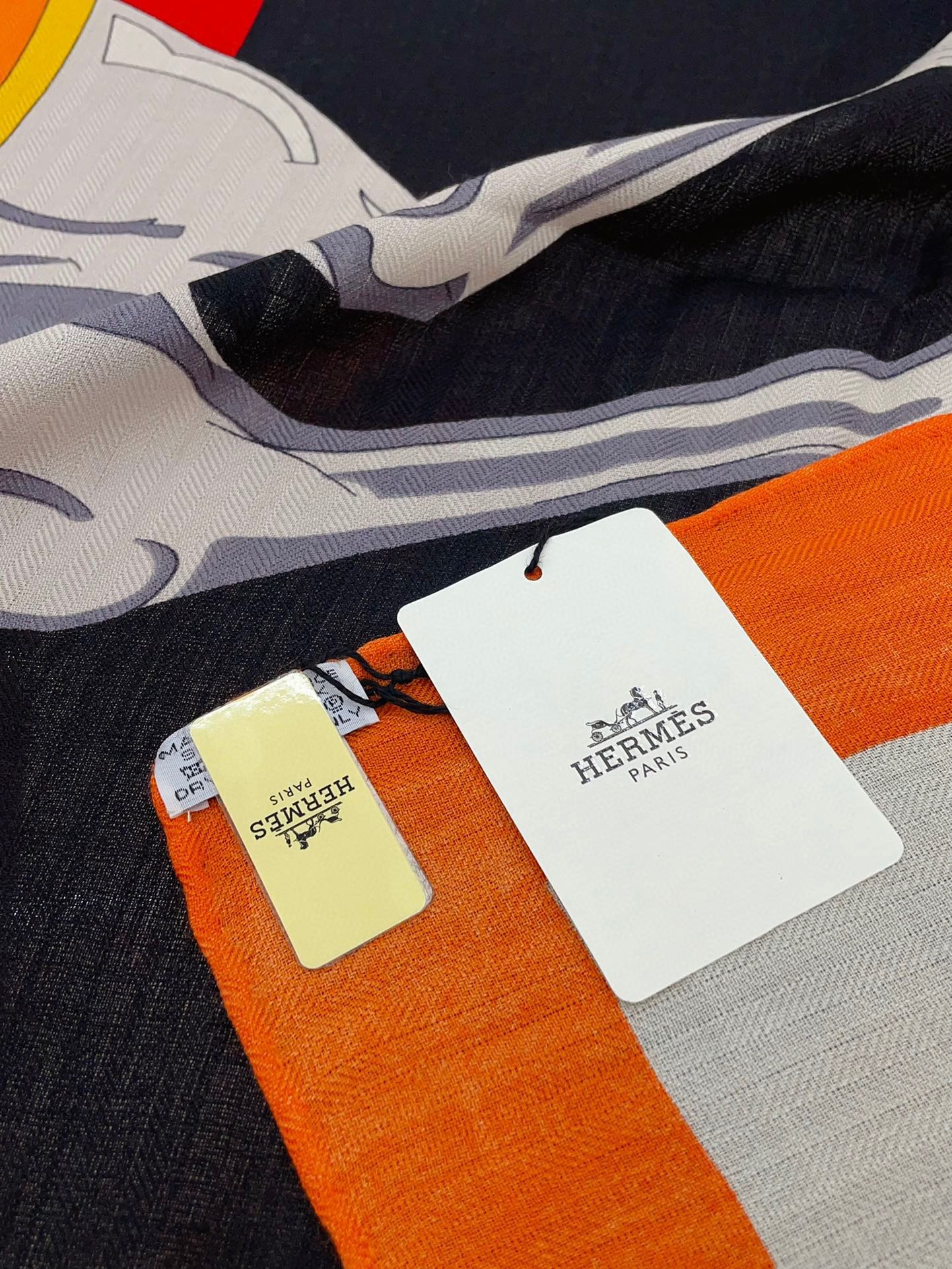 Cheval a la Couverture Scarf 140 CM In Black Colorful Cashmere And Silk 344367