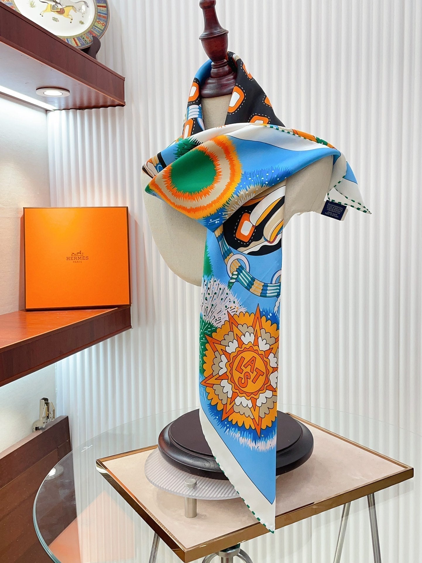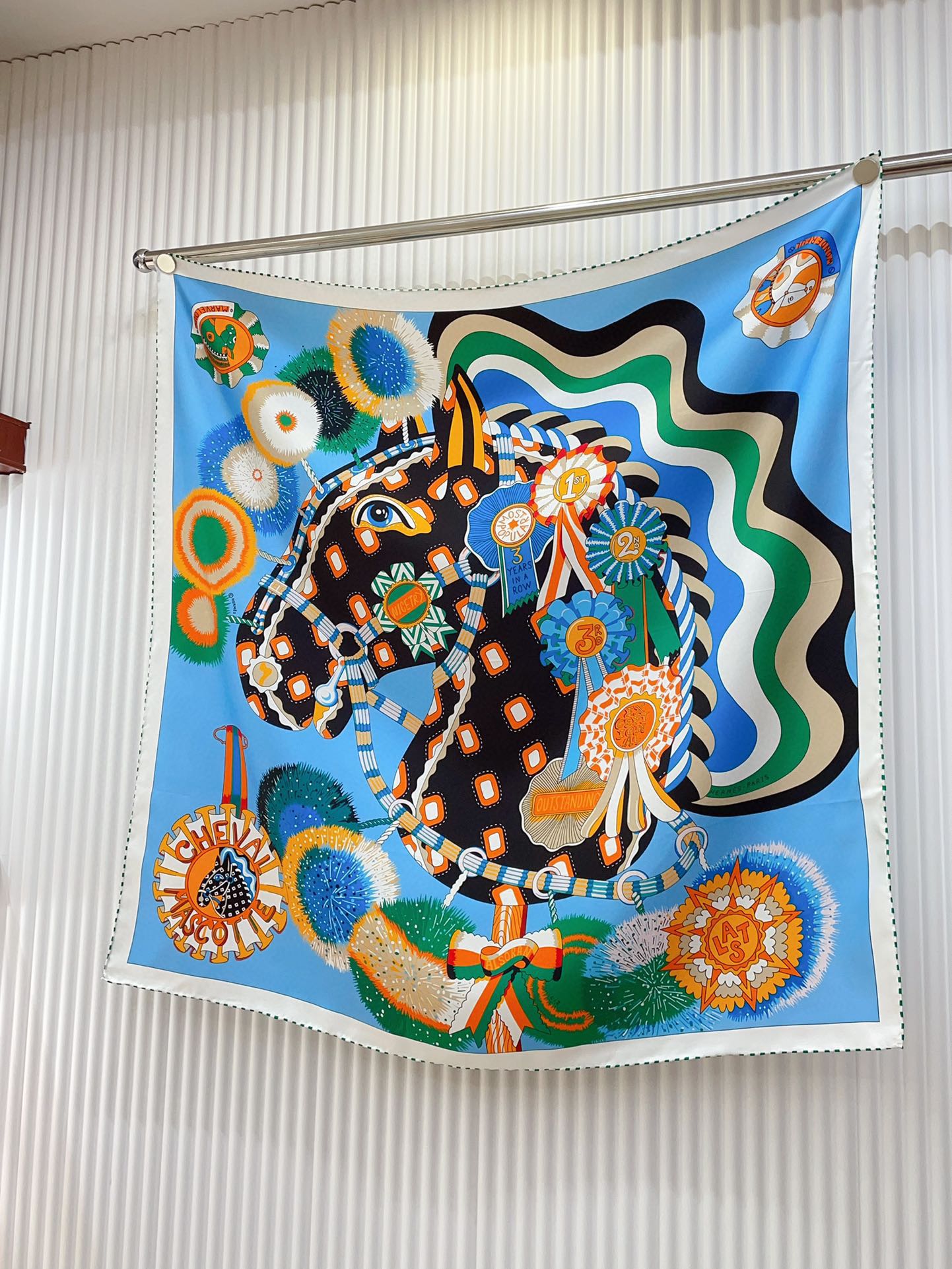 Cheval Mascotte Scarf 90 CM In Blue Colorful Silk Twill 206456