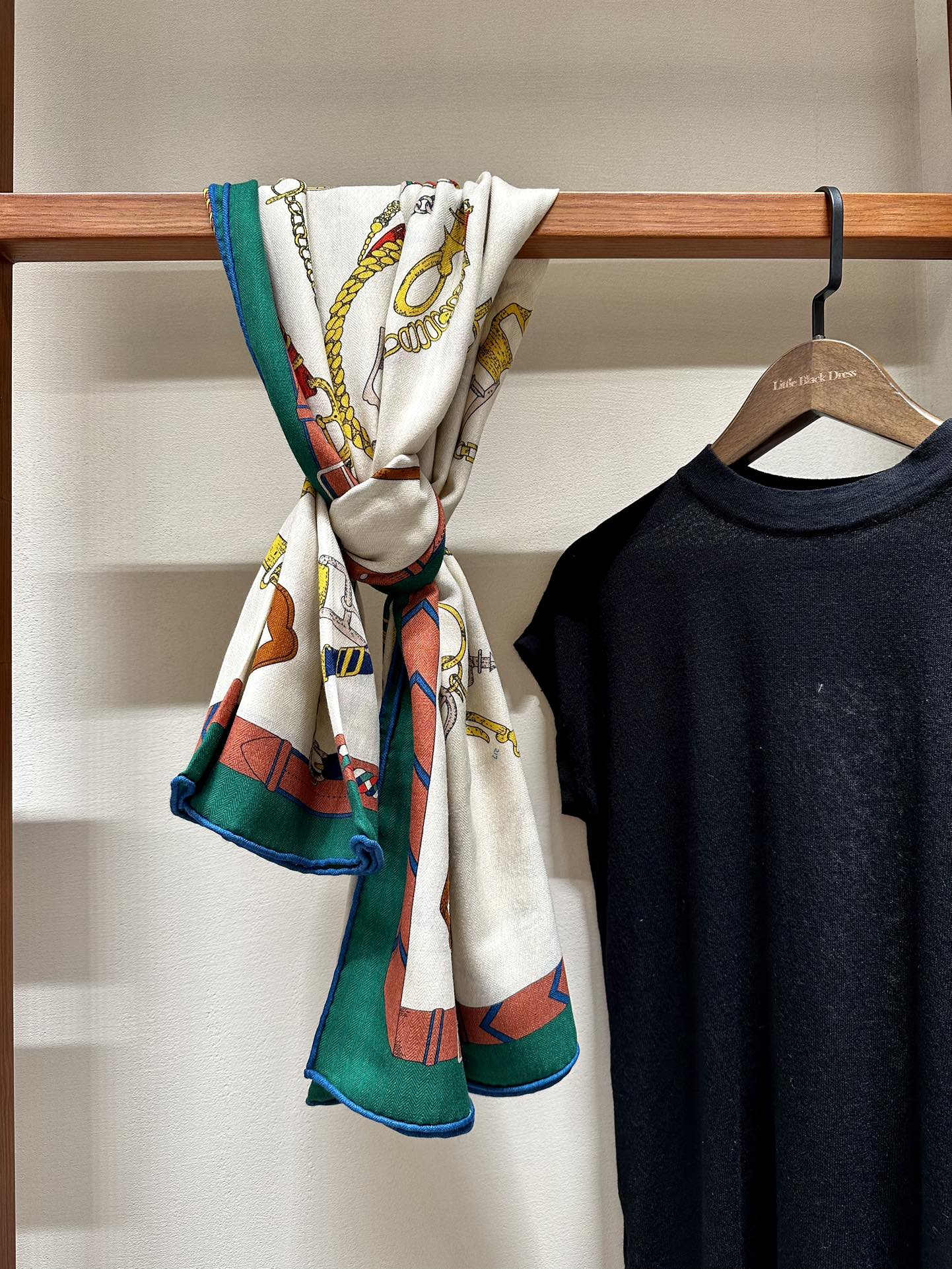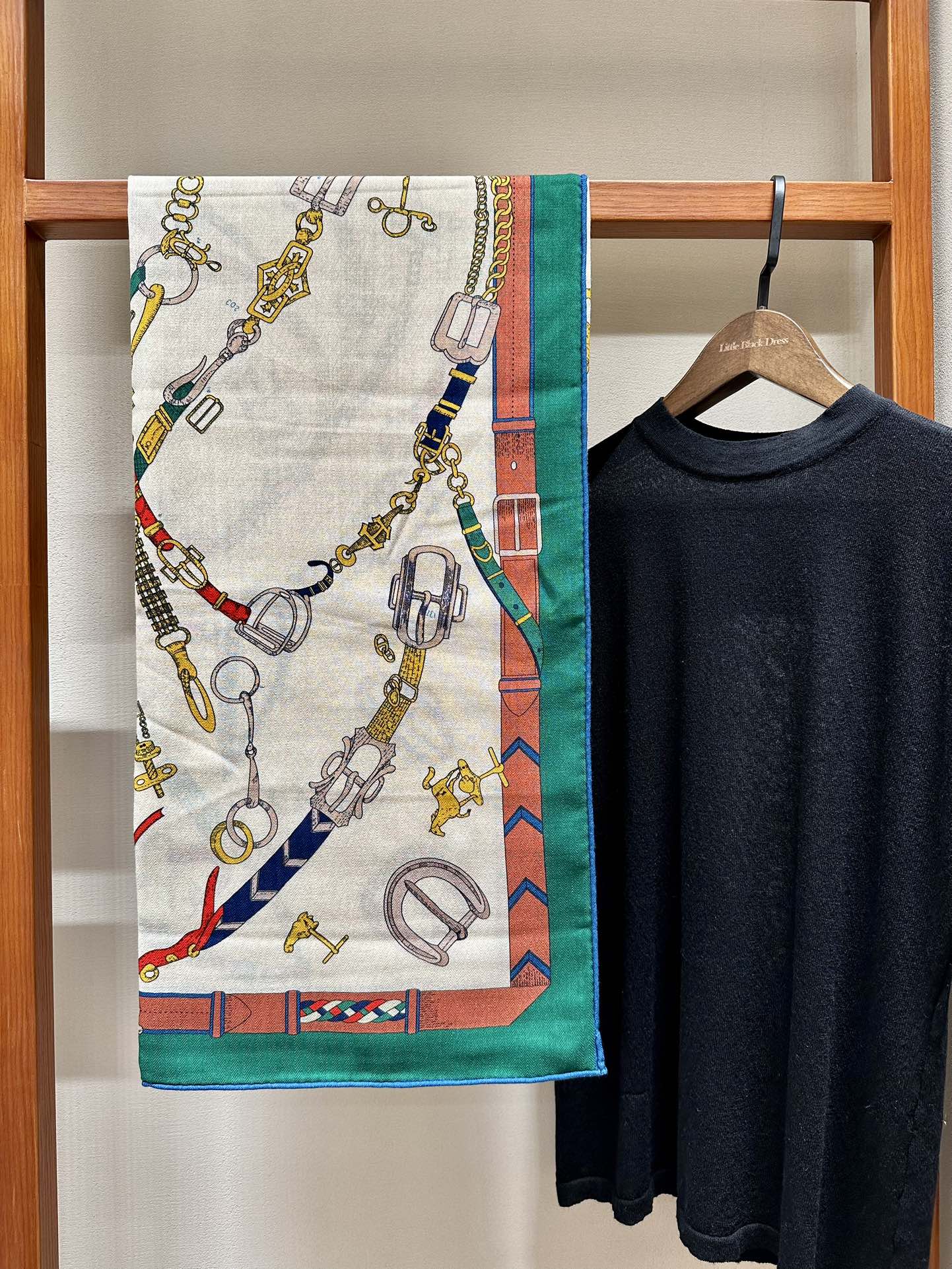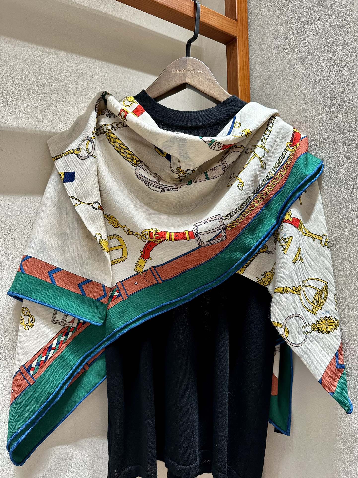 Chevaux Dechaines Shawl 135 CM IN Green Colorful Cashmere Silk 373684