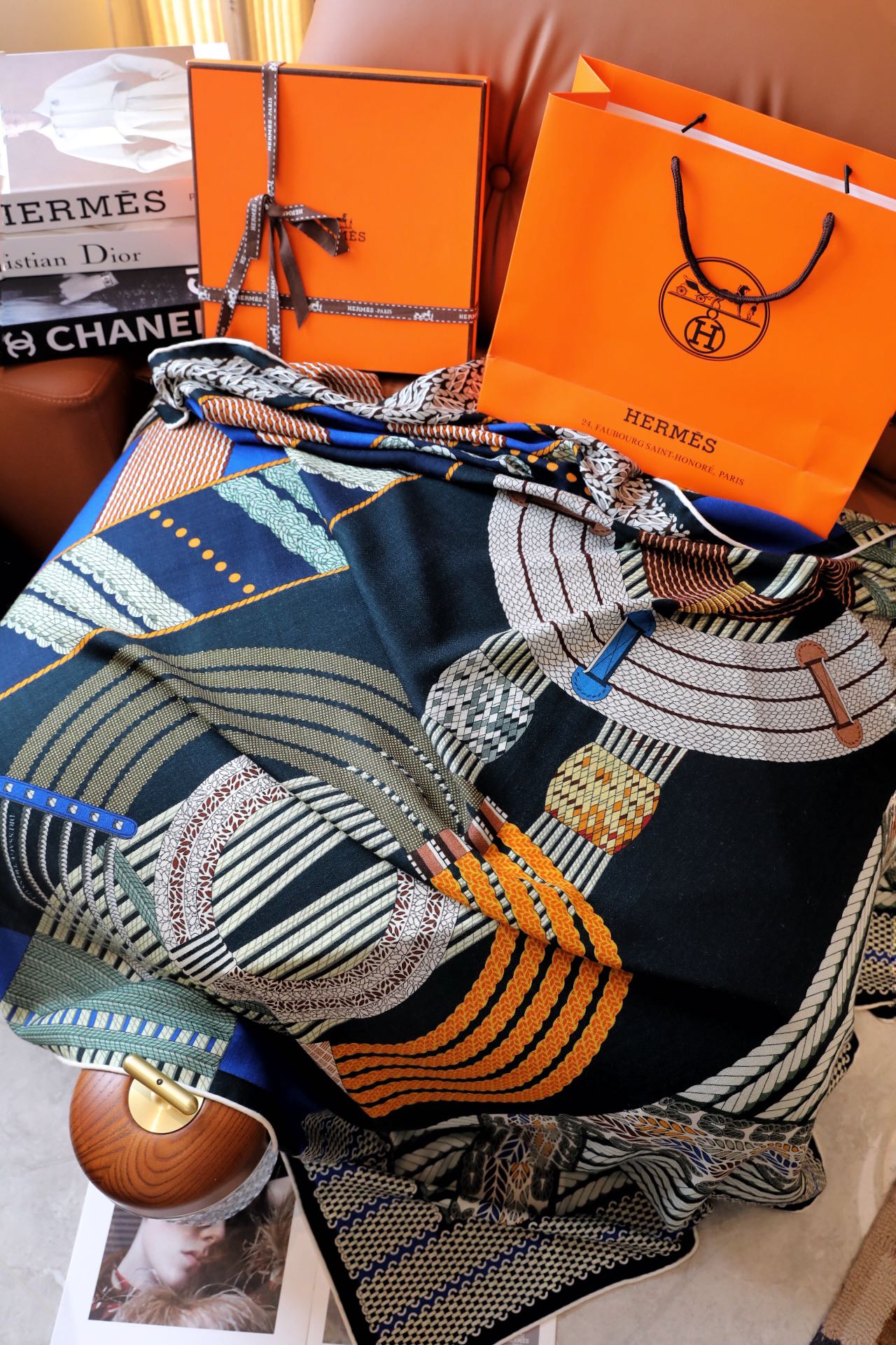 Dressage Tressage Scarf 140 CM Black Colorful Silk 404009