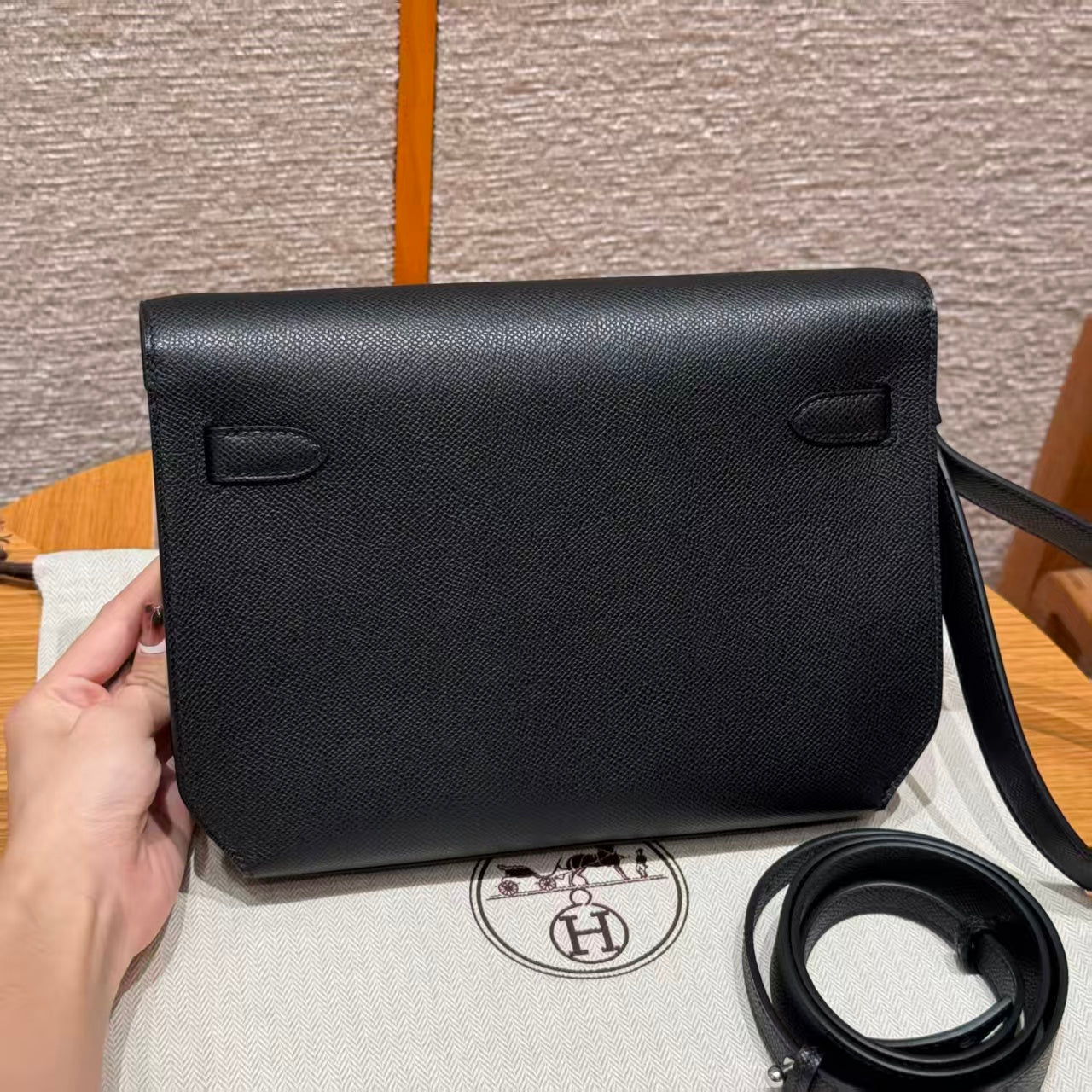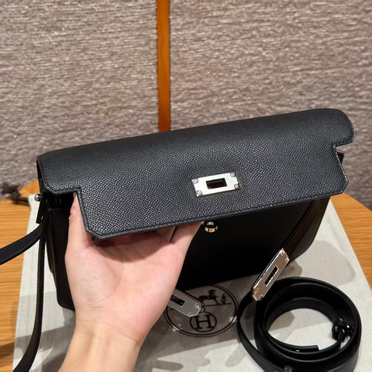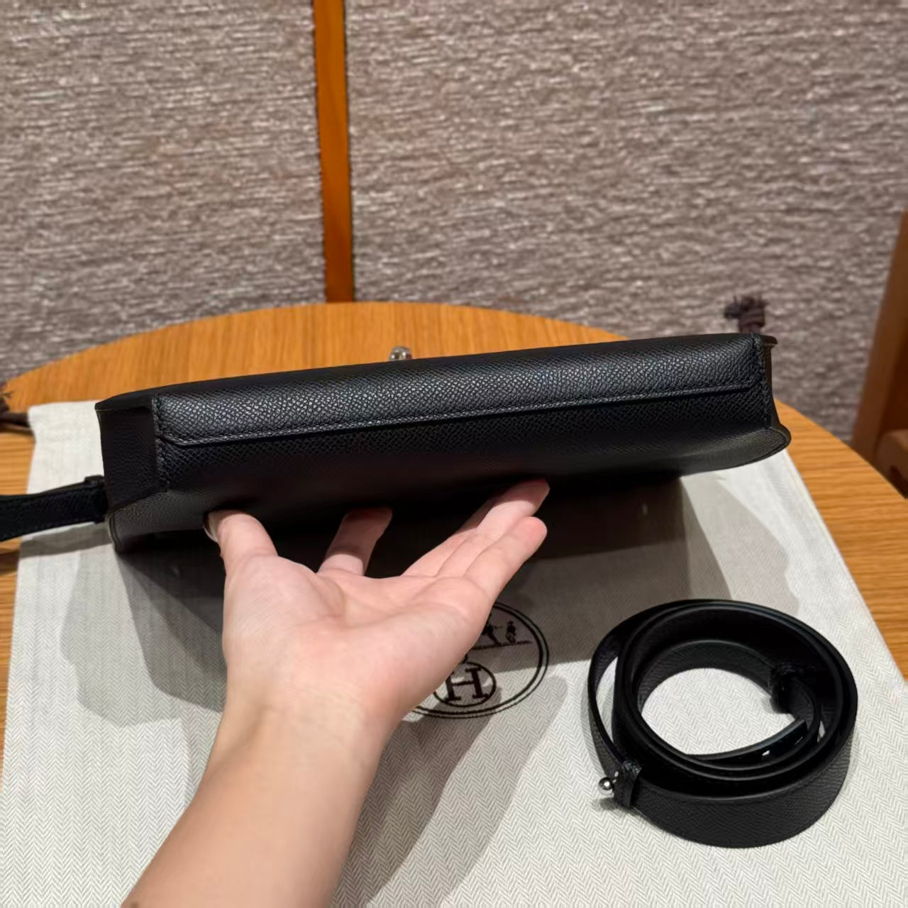 Hm Kelly Depeches Pouch 25 Pouch Black Cowhide Sliver Hardware