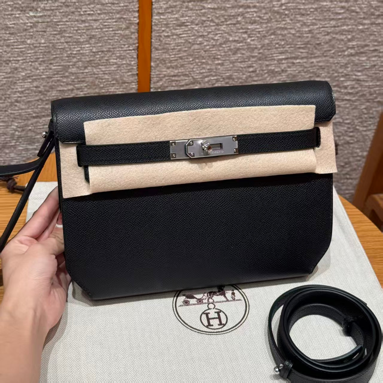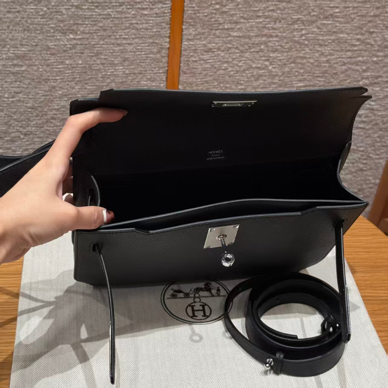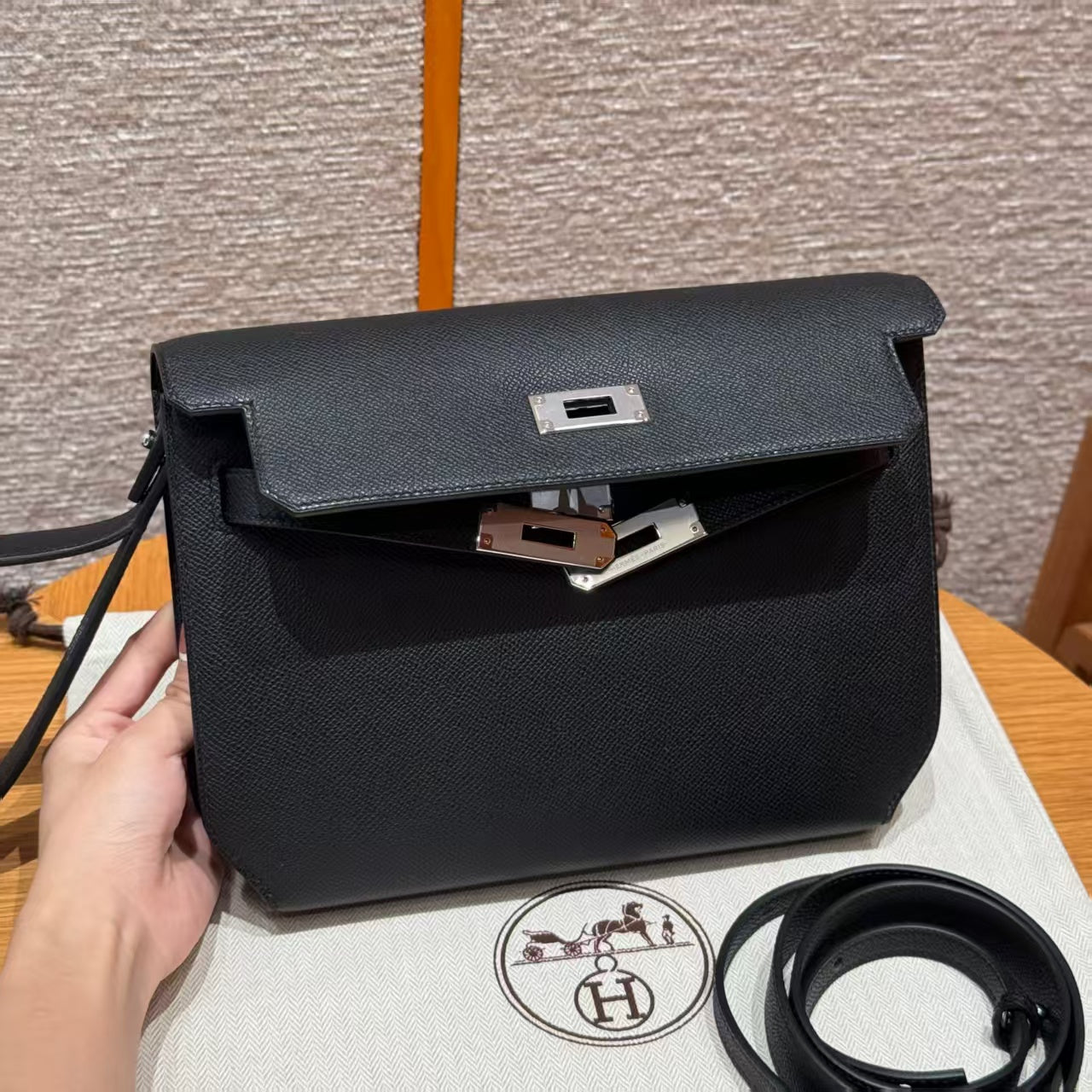 Hm Kelly Depeches Pouch 25 Pouch Black Cowhide Sliver Hardware