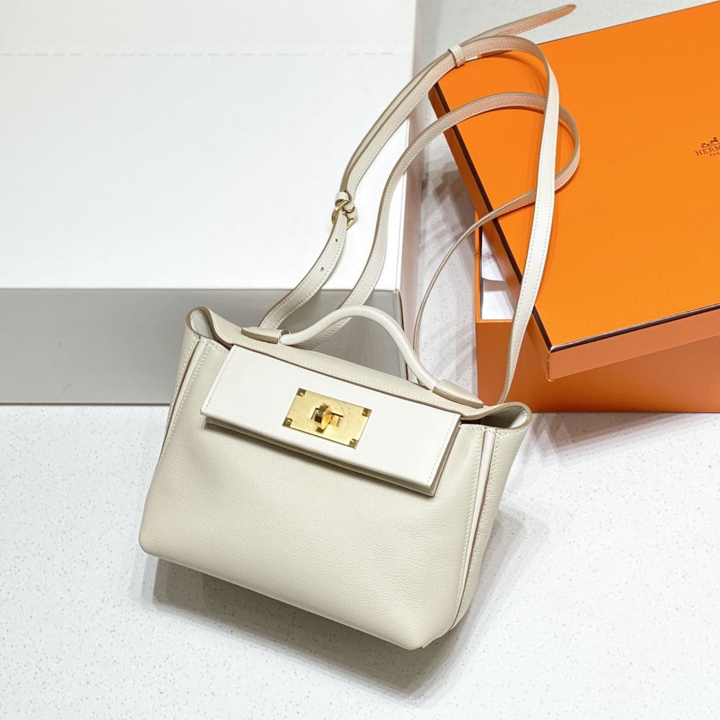 HM Mini 24 Sur 24 Bag 21cm White Swift Cowhide Gold Hardware 250270