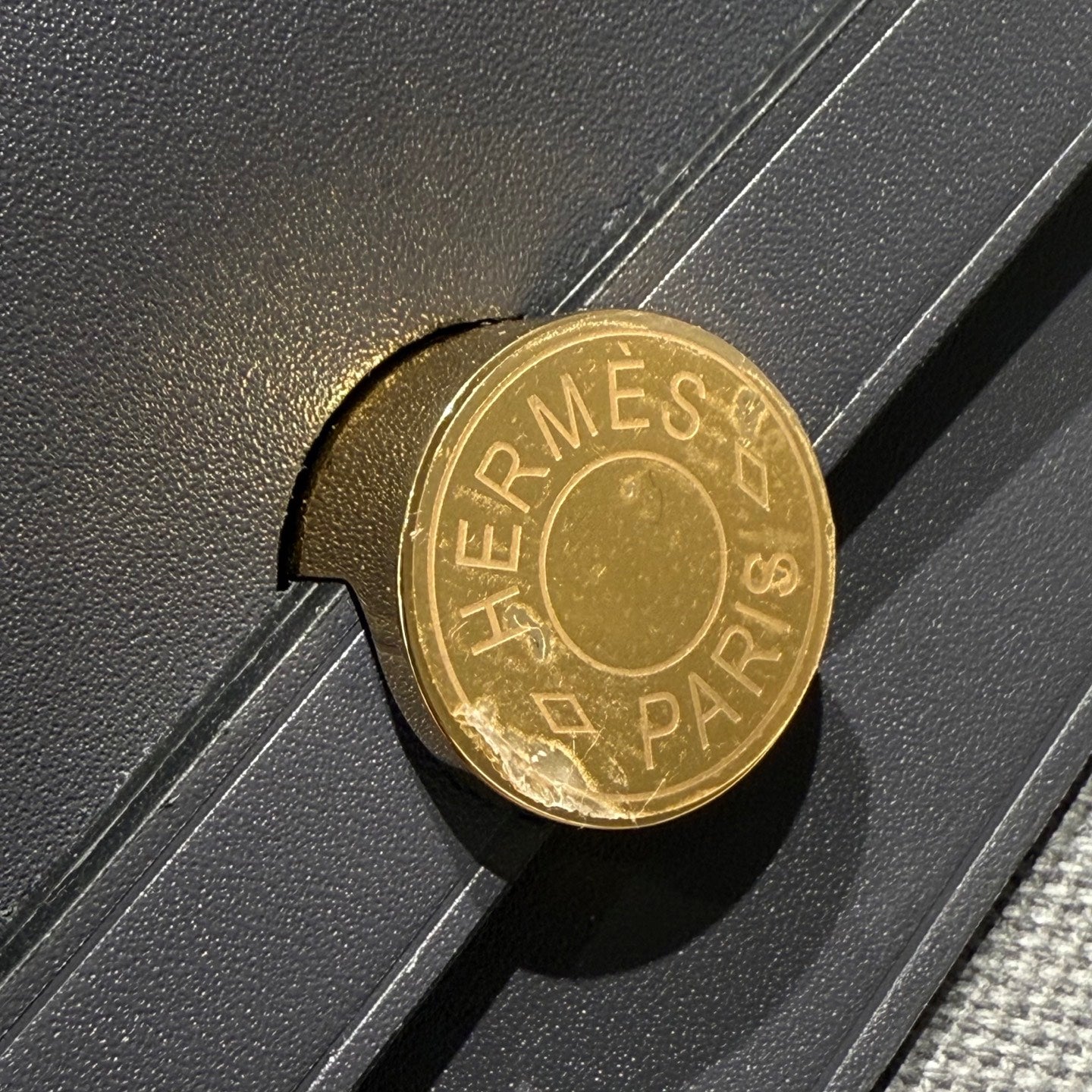 HM Mini Herbag Gold Buckle 20 Gray Canvas and Hunter Cowhide 243270
