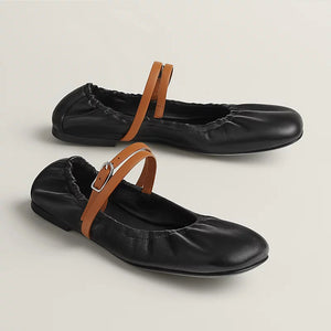 H-BUCKLE BALLLET FLAT BLACK CALFSKIN