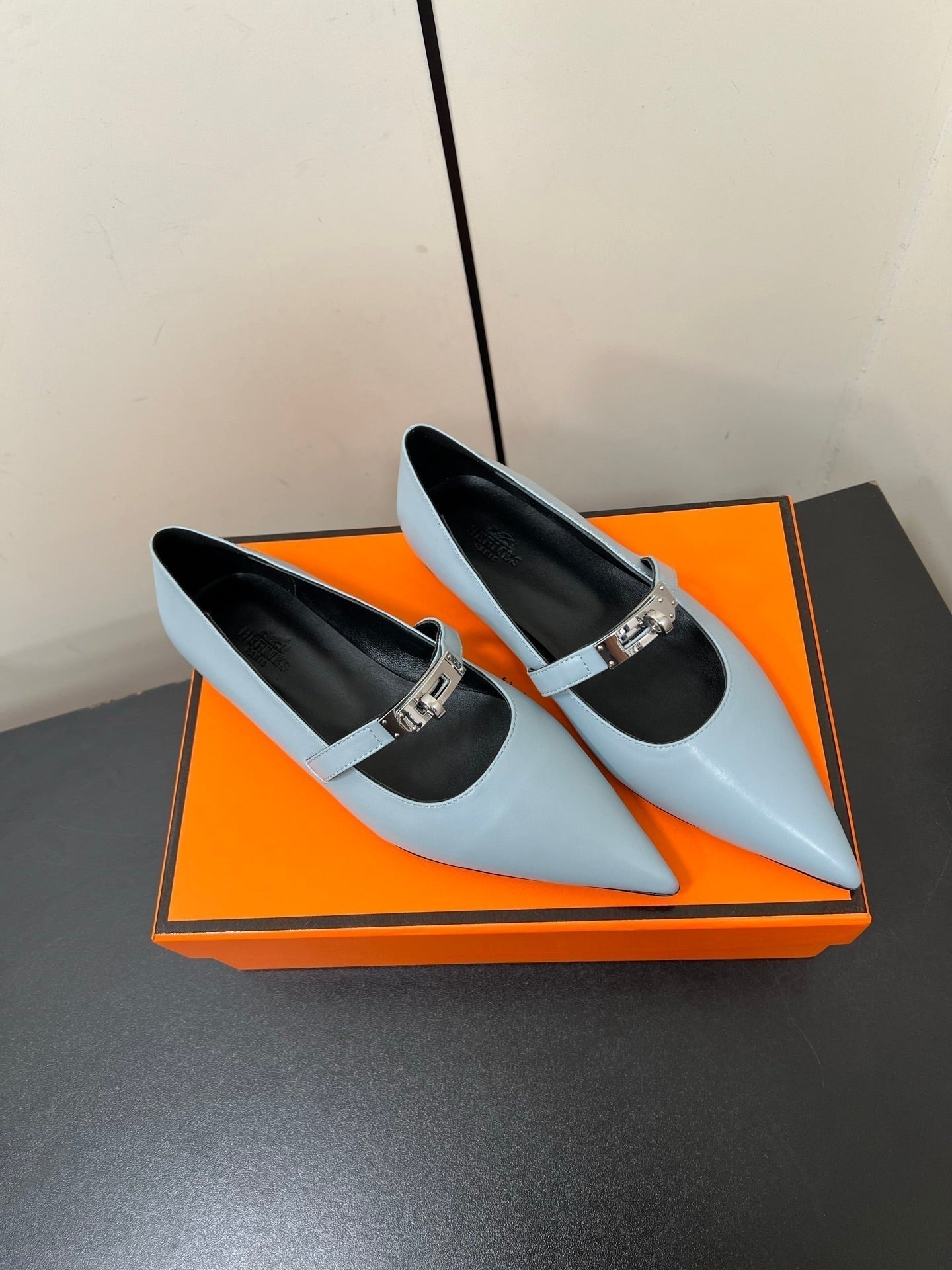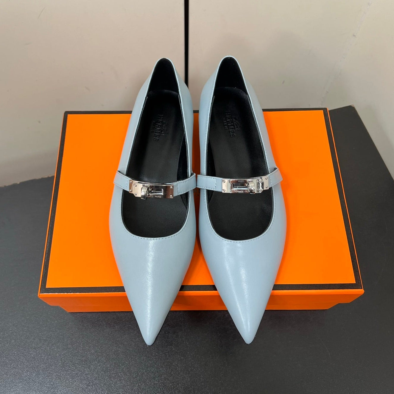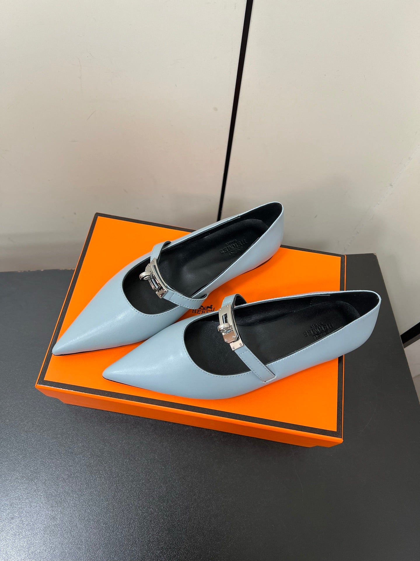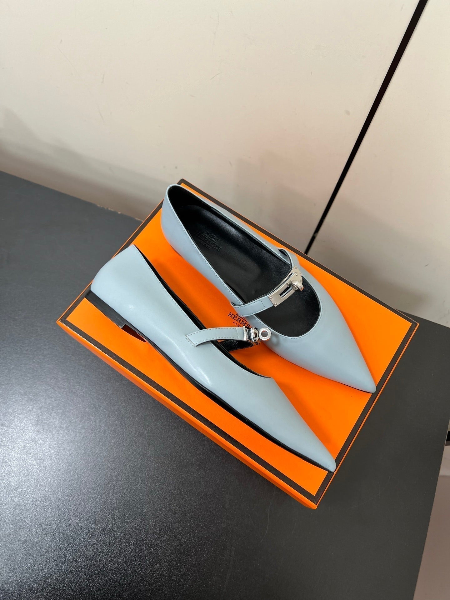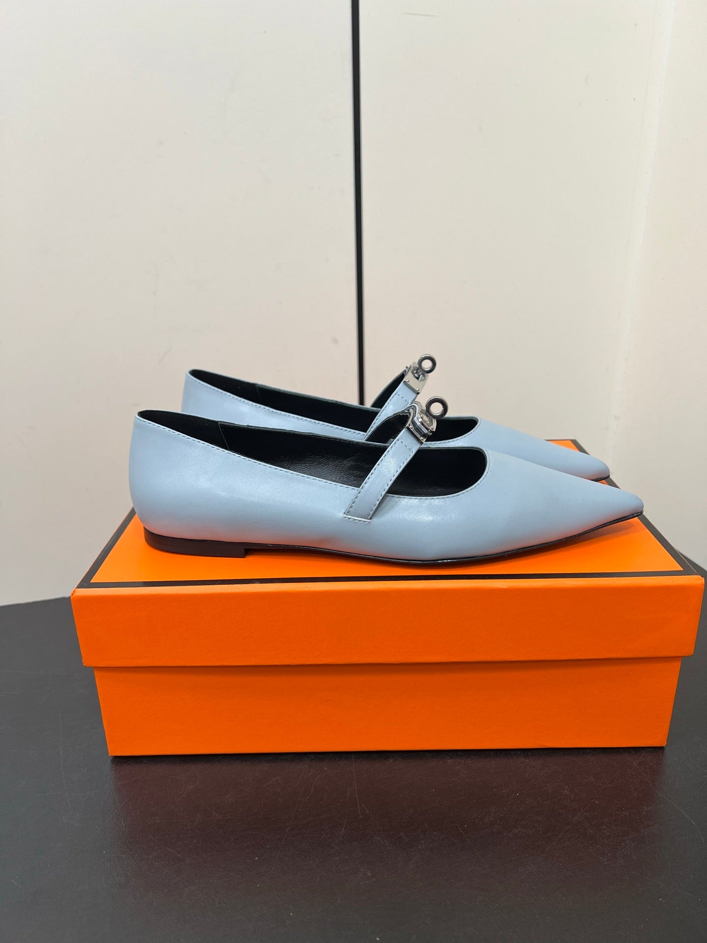 HM 25C Kelly Ballet Flat Baby Blue Calfskin 210296