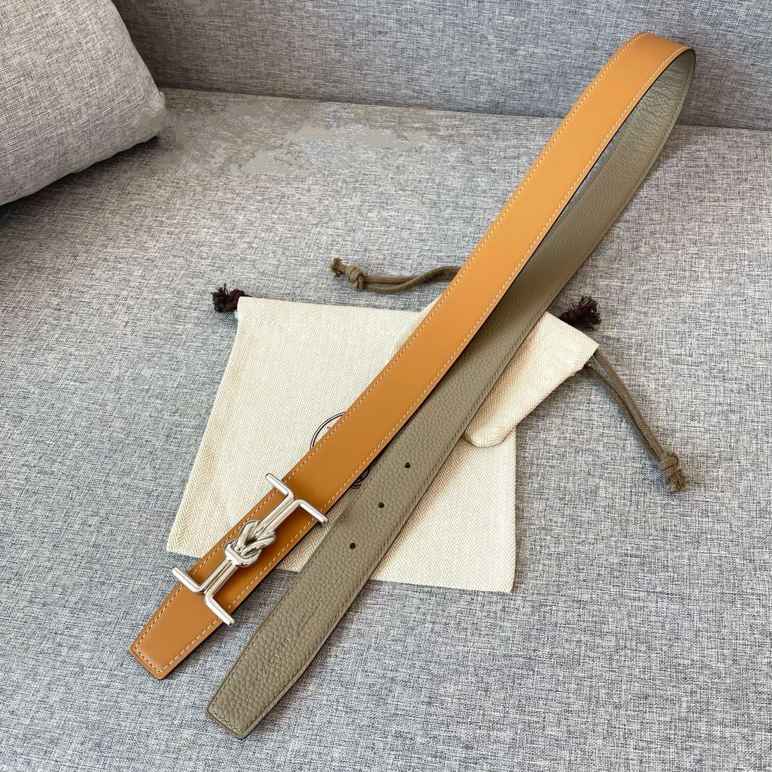 H MARIN REVERSIBLE BELT 32MM SILVER BUCKLE GOLD TIN GREY LEATHER