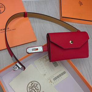 hm kelly belt 18mm with pocket dark red calfskin gold buckle
