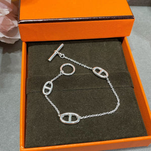 SILVER PIG NOSE VERSION OVAL H LETTER BRACELET