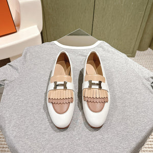 Royal Loafer Pink Mix White Calfskin With Fringe Detail And Silver Signature Buckle 509418