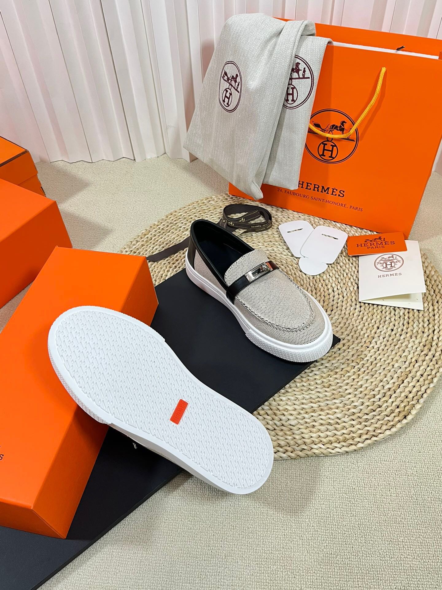 HM Buckle Casual Loafer Black Cowhide Cloth 317046