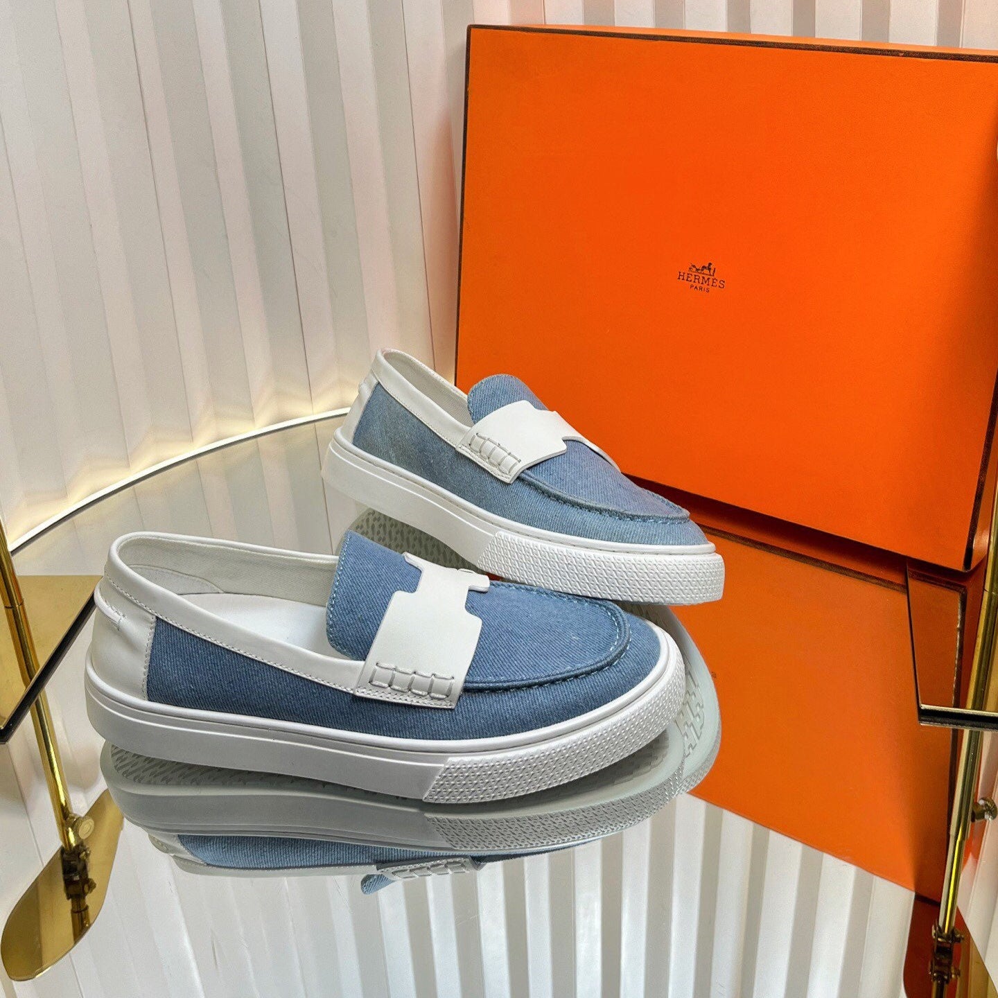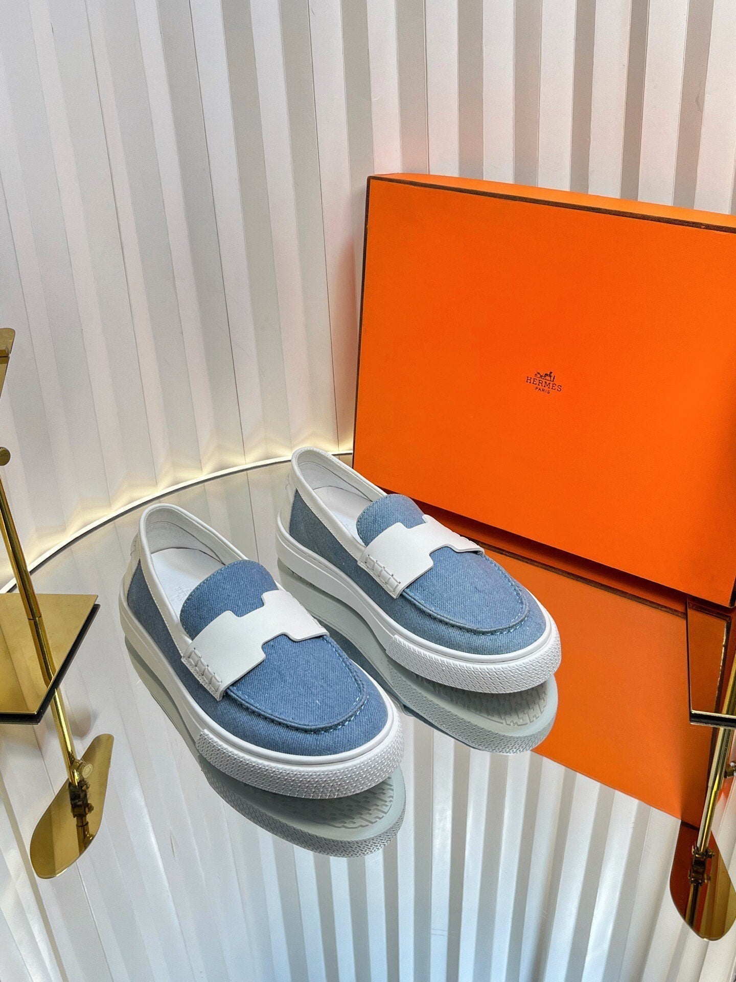 HM Denim Casual Loafer Blue White Cowhide Cloth 317068