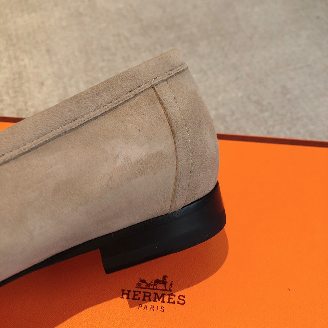 Royal Loafer Beige Suede Calfskin With Fringe Detail And Silver Signature Buckle 509436