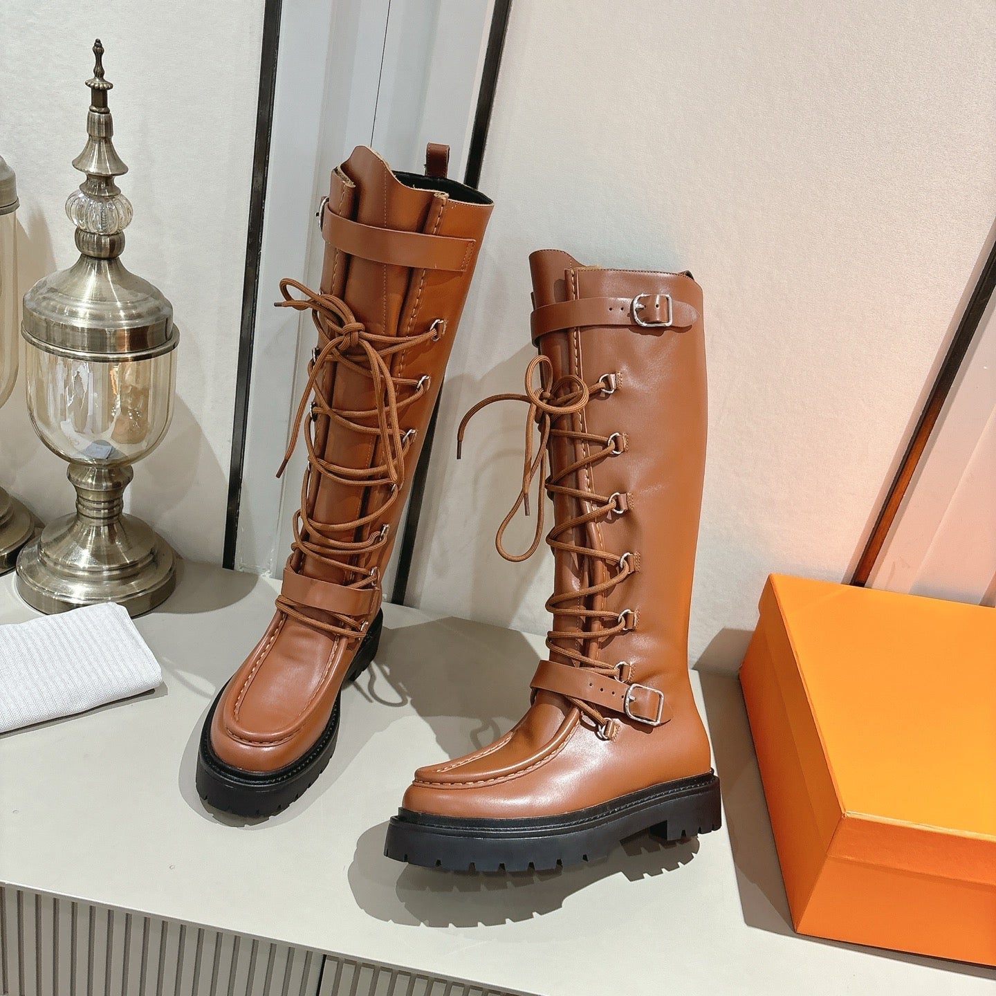 HM Lace Up Boots 25mm Belt Buckle Caramel Leather 466586
