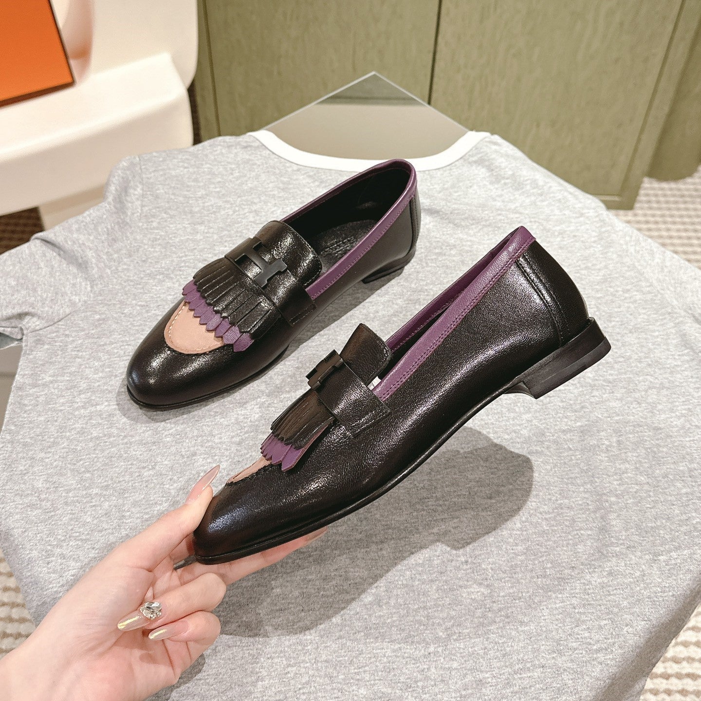 HM Mocassins Royal Loafers Black Purple Sheepskin 445012