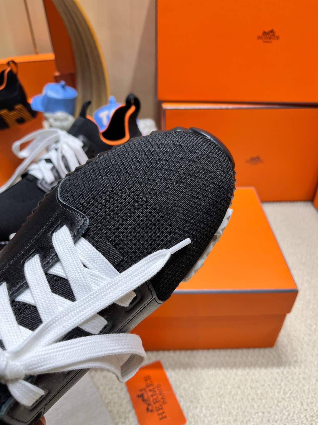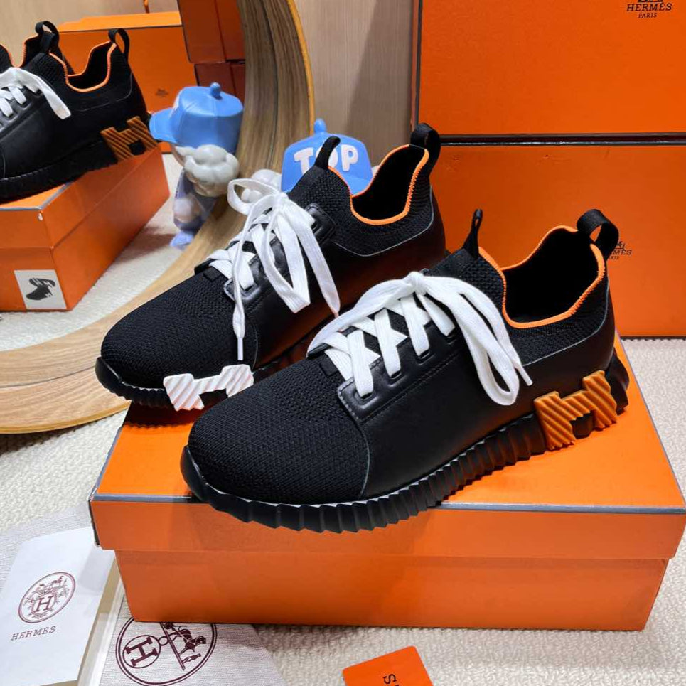 HM Depart slip-on Sneaker Black mix White Knitted fabric and Calfskin 206316