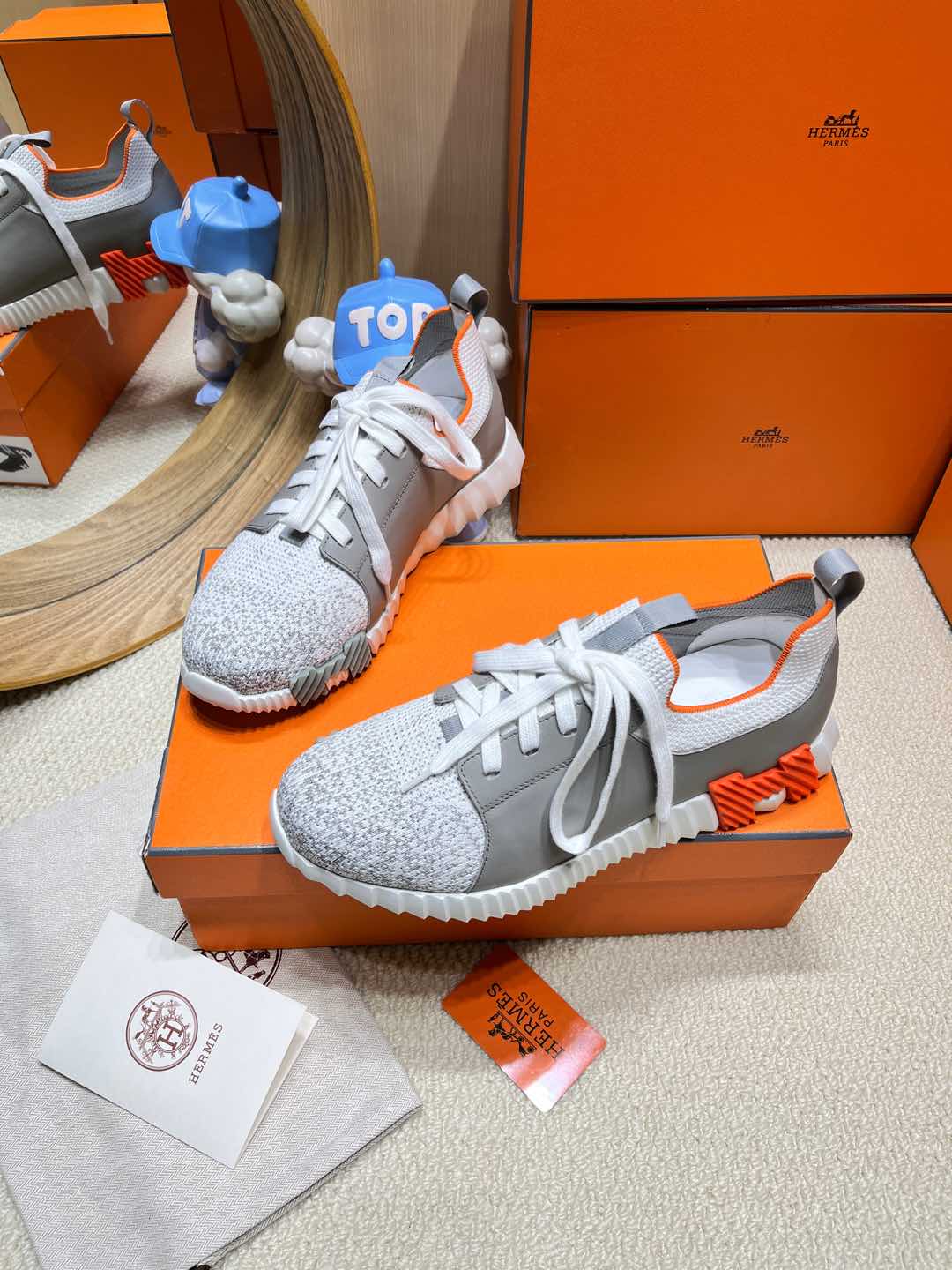 HM Depart slip-on Sneaker White mix gray Knitted fabric and Calfskin 206323
