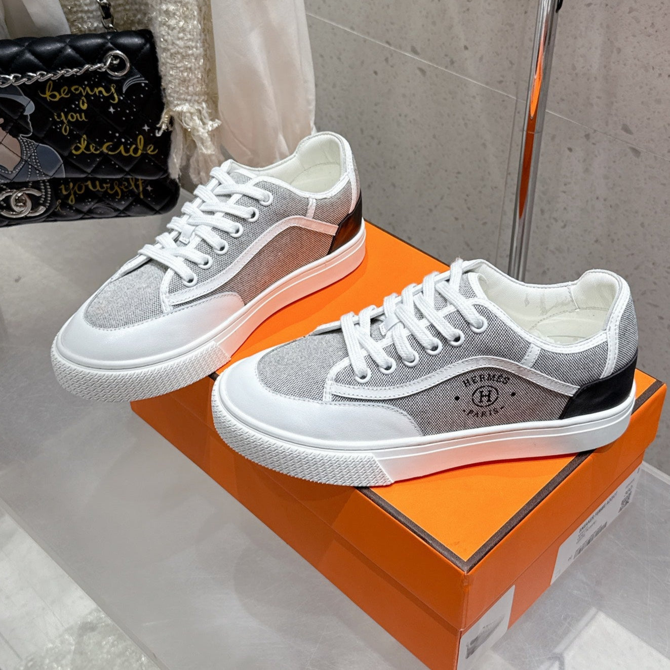 HM Get Sneaker Grey Maxi canvas and Calfskin 204758