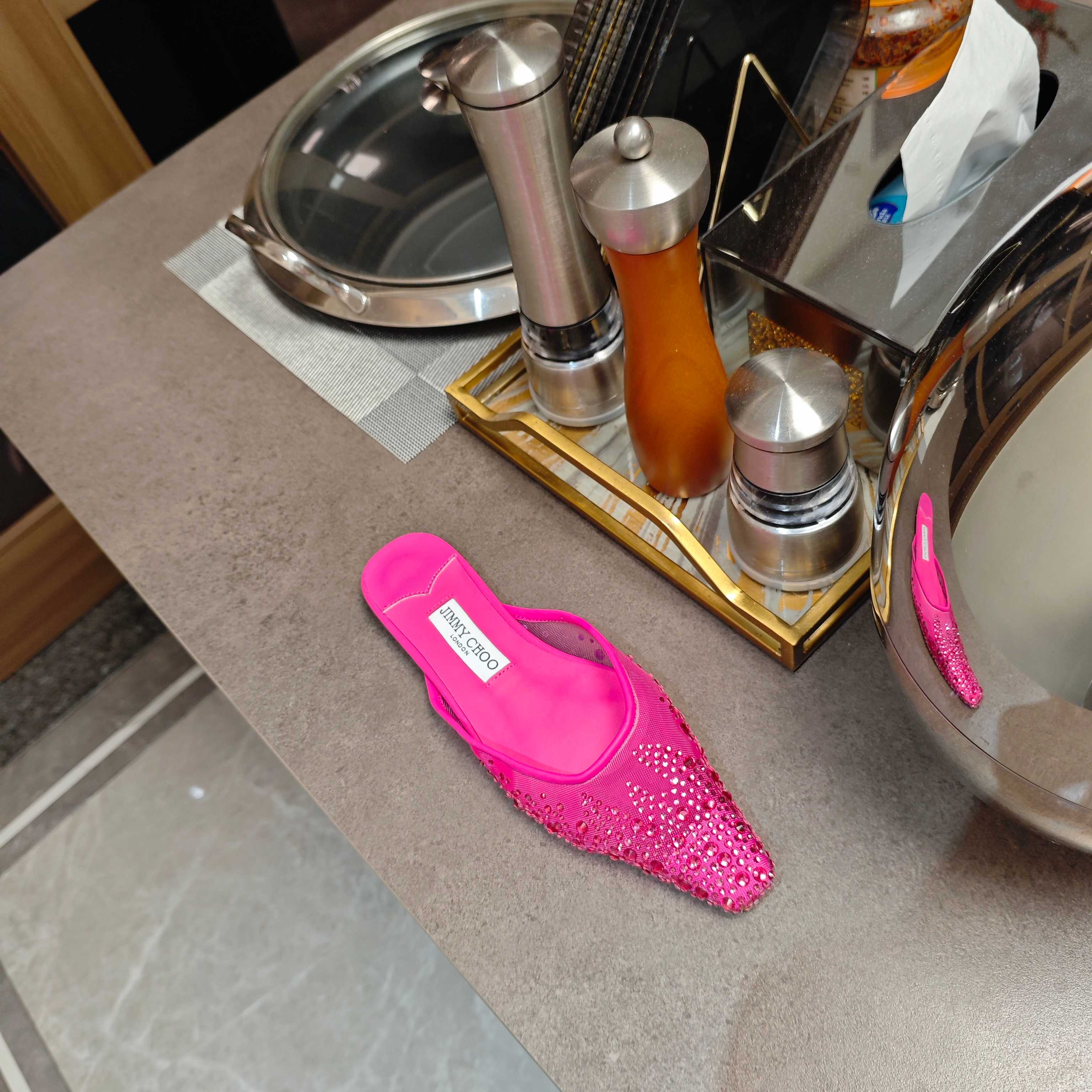 Jimmy 25 Mule Flats Deep Pink Mesh Gauze 240057